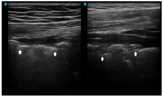 - Hernández-Píriz, A.; Tung-Chen, Y.; Jiménez-Virumbrales, D.; Ayala-Larrañaga, I.; Barba-Martín, R.; Canora-Lebrato, J.; Zapatero-Gaviria, A.; Casasola-Sánchez, G.G. Importance of Lung Ultrasound Follow-Up in Patients Who Had Recovered from Coronavirus Disease 2019: Results from a Prospective Study. J. Clin. Med. 2021, 10, 3196. [Google Scholar] [CrossRef]
