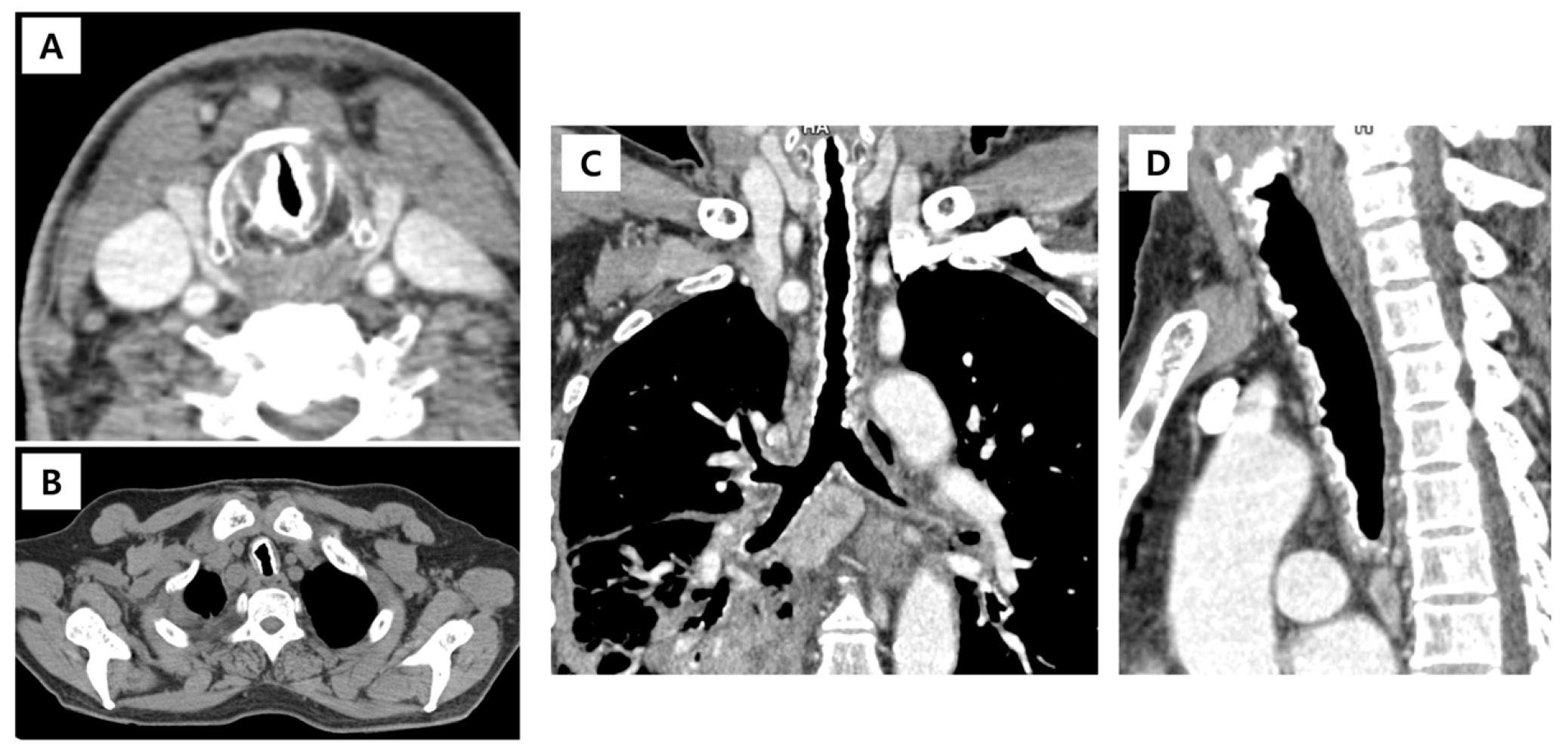 - Rajan, S.; Arul, L.; Sreekumar, G.; Mathew, J. Tracheobronchopathia osteochondroplastica: An unanticipated difficult airway. J. Anaesthesiol. Clin. Pharmacol. 2025, 41, 751–752. [Google Scholar] [CrossRef]
