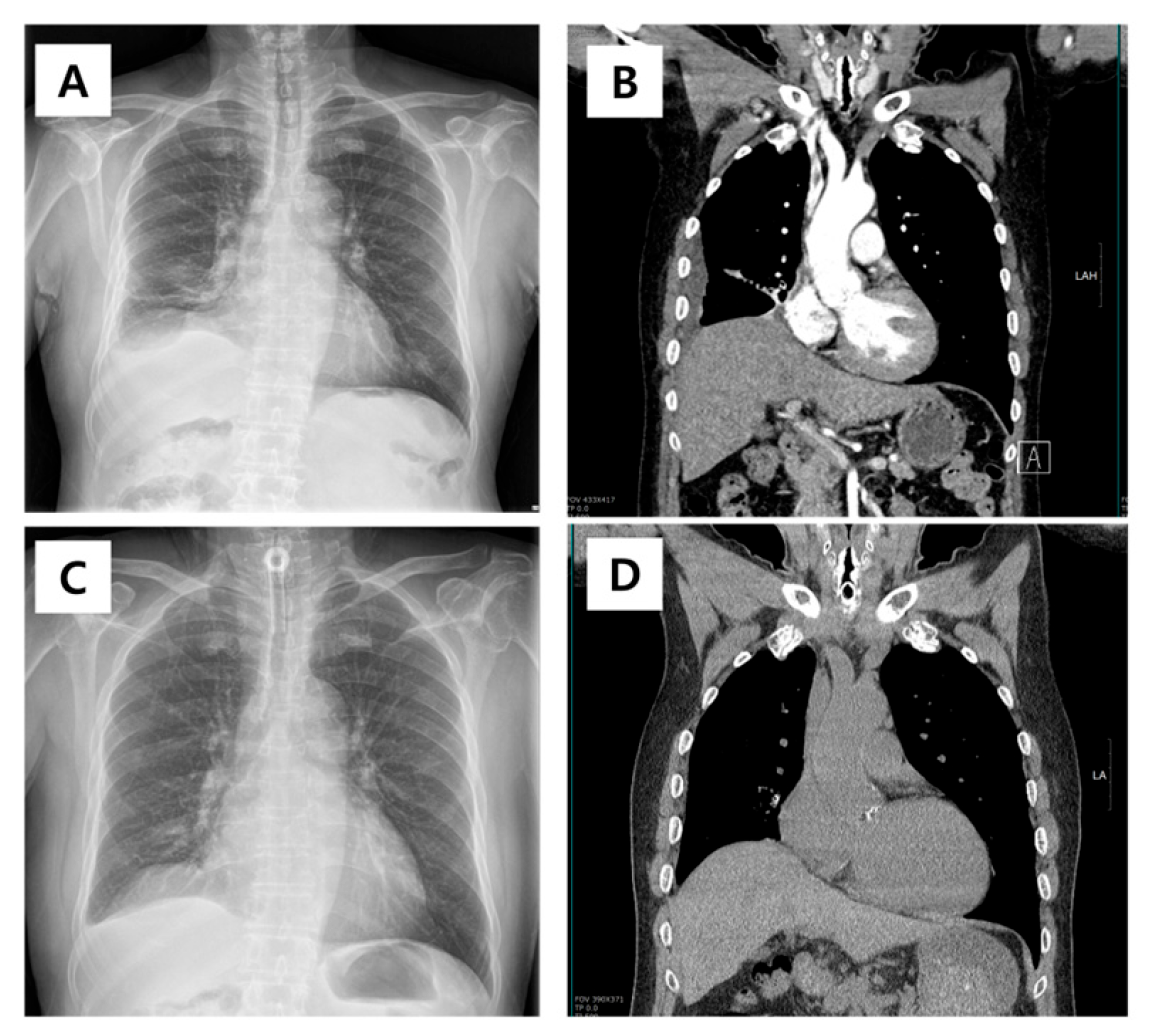 - Doshi, H.; Thankachen, R.; Philip, M.A.; Kurien, S.; Shukla, V.; Korula, R.J. Tracheobronchopathia osteochondroplastica presenting as an isolated nodule in the right upper lobe bronchus with upper lobe collapse. J. Thorac. Cardiovasc. Surg. 2005, 130, 901–902. [Google Scholar] [CrossRef]