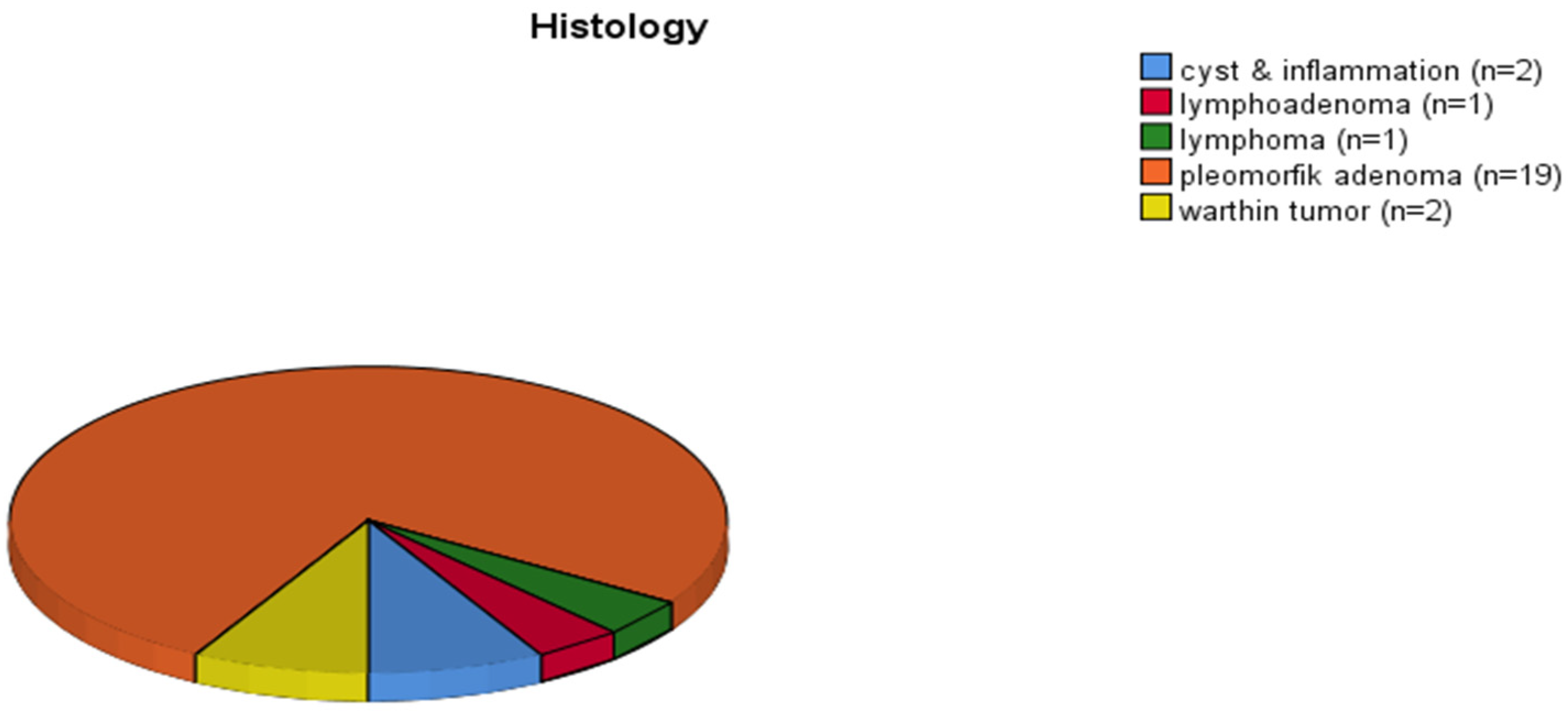 n = 25), pleomorphic adenoma was the most frequently observed histological type (
