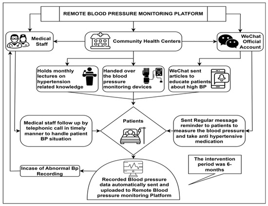 - Patients could remotely monitor their BP through the WeChat application. The monitoring platform allows healthcare providers to view the BP recordings in real time [27], see Figure 1.