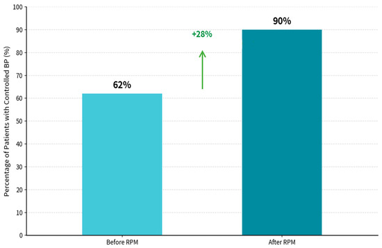 In this pragmatic, multicenter pre–post study, BP control increased from 62.4% to 90.1% during the RPM-supported care period. These findings are directionally consistent with randomized trials and meta-analyses showing that home BP monitoring and telemonitoring, particularly when paired with clinician feedback and medication titration, can improve BP outcomes compared with usual care, although average effect sizes in controlled studies are typically modest [11,51,52].
