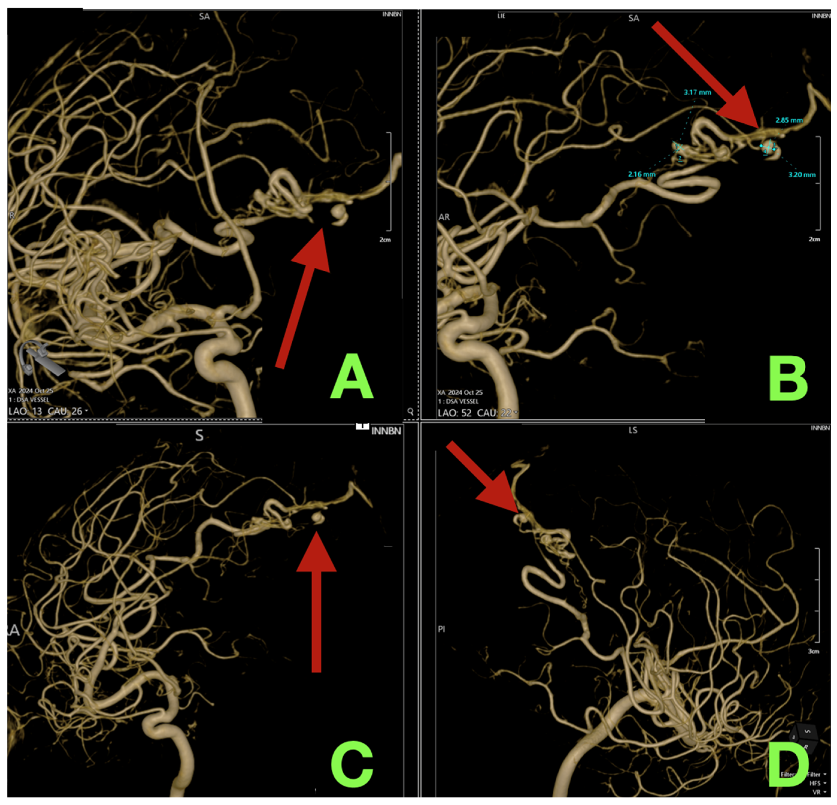 - Dobrocky, T.; Matzinger, M.; Piechowiak, E.I.; Kaesmacher, J.; Pilgram-Pastor, S.; Goldberg, J.; Bervini, D.; Klail, T.; Pereira, V.M.; Z’Graggen, W.; et al. Benefit of Advanced 3D DSA and MRI/CT Fusion in Neurovascular Pathology. Clin. Neuroradiol. 2023, 33, 669–676. [Google Scholar] [CrossRef]
