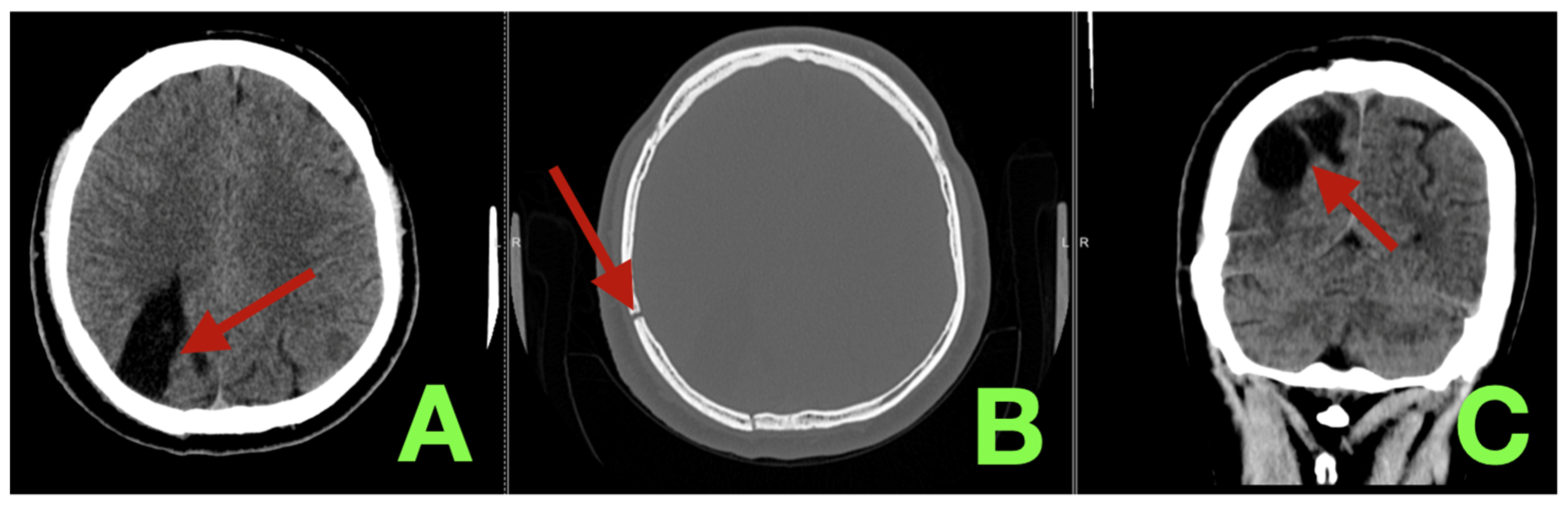 - Chen, K.-W.; Su, I.-C.; Lee, J.-E.; Liu, H.-M. Treatment of Arteriovenous Malformation with High-Flow Fistula and Bilateral Transverse-Sigmoid Sinuses Stenosis Resulting Diffuse Cortical Vein Engorgement and Symptoms Resembling Carotid-Cavernous Fistula. Asian J. Neurosurg. 2015, 10, 310–312. [Google Scholar] [CrossRef]