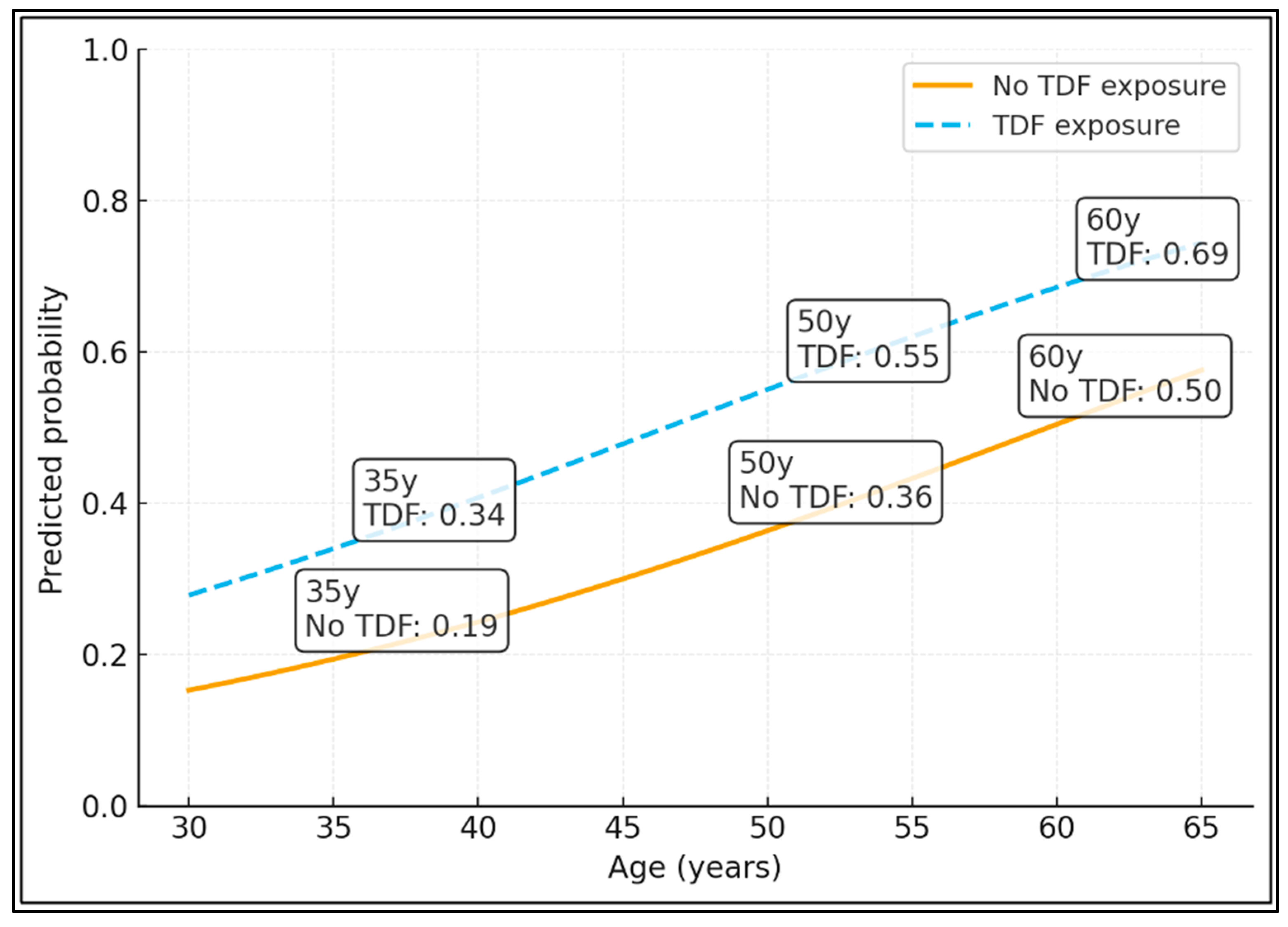 | TDF exposure ever (yes vs. no) | 2.14 | 0.97–4.72 | 0.059 |