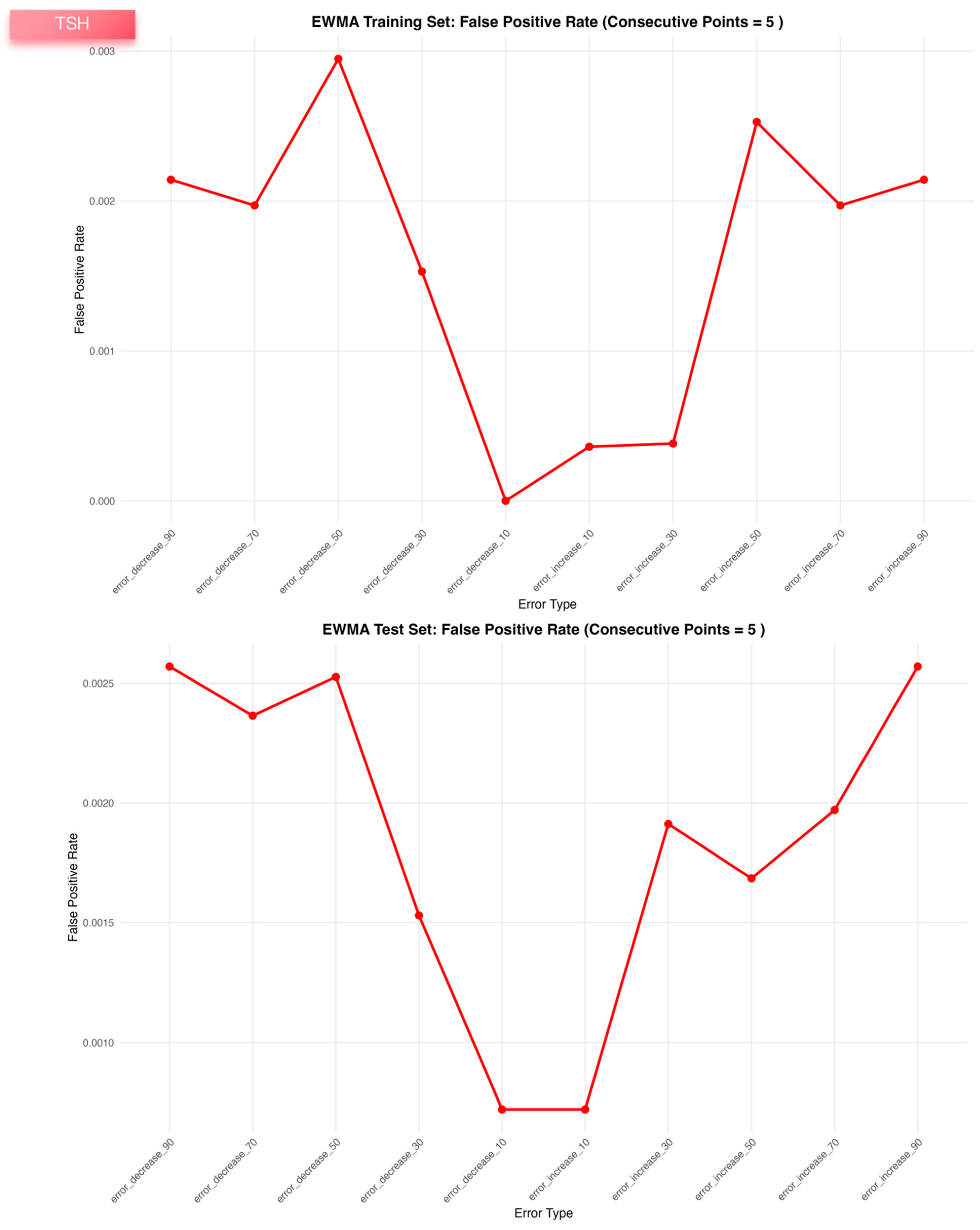 - Mi, M.; Gong, J.; Sun, W.; Xu, T.; Jiang, Q.; Zhang, D.; Han, A.; Liang, W. A new optimization combination used in the exponentially weighted moving average quality control of electrolyte programs. Clin. Chim. Acta 2025, 572, 120280. [Google Scholar] [CrossRef]