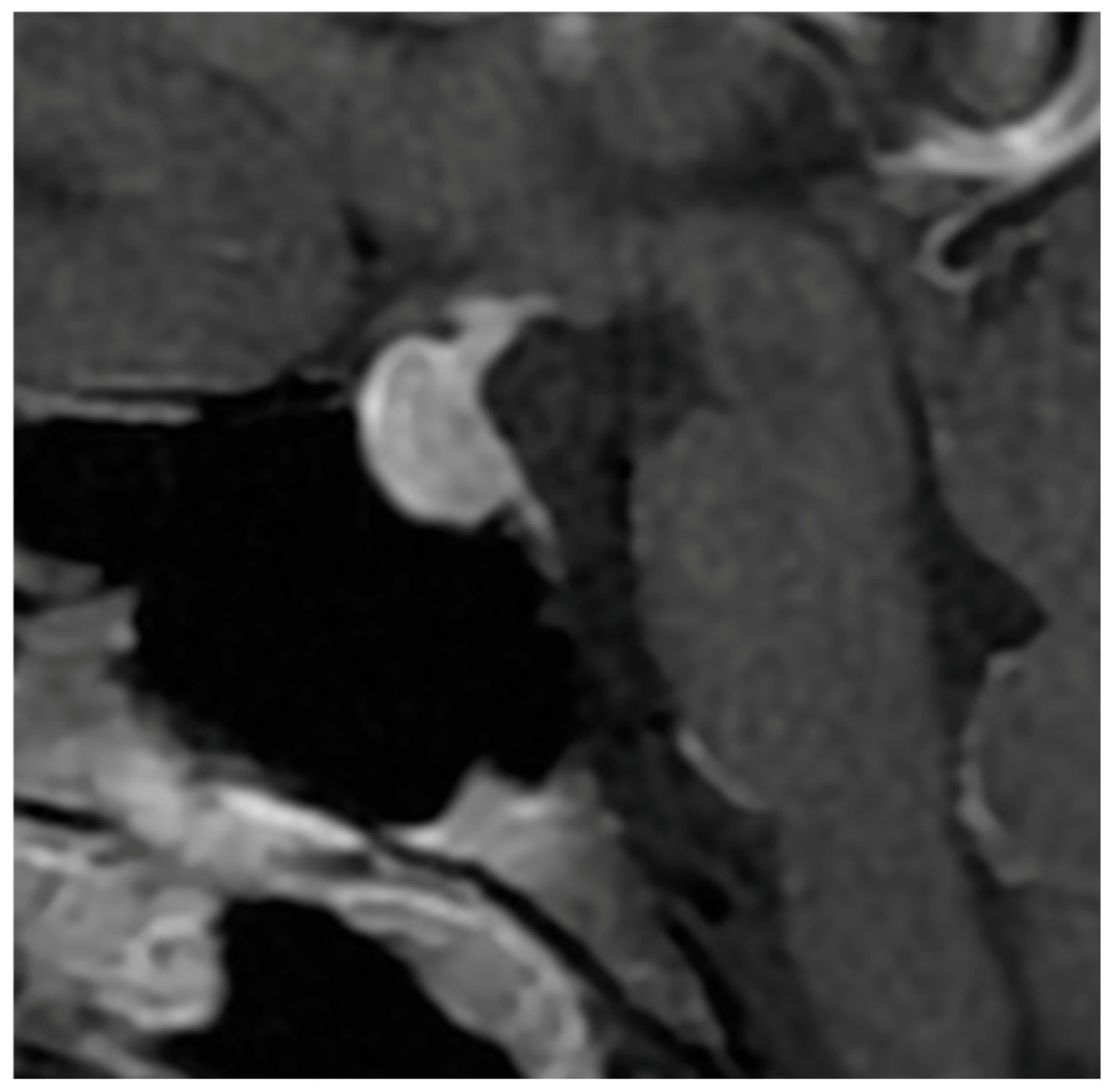36]. Despite advances in MRI characterization, no single feature is pathognomonic for either entity, and both conditions most commonly appear as solitary, homogeneous, or mildly heterogeneous sellar masses with varying degrees of stalk deviation, enhancement, and mass effect.