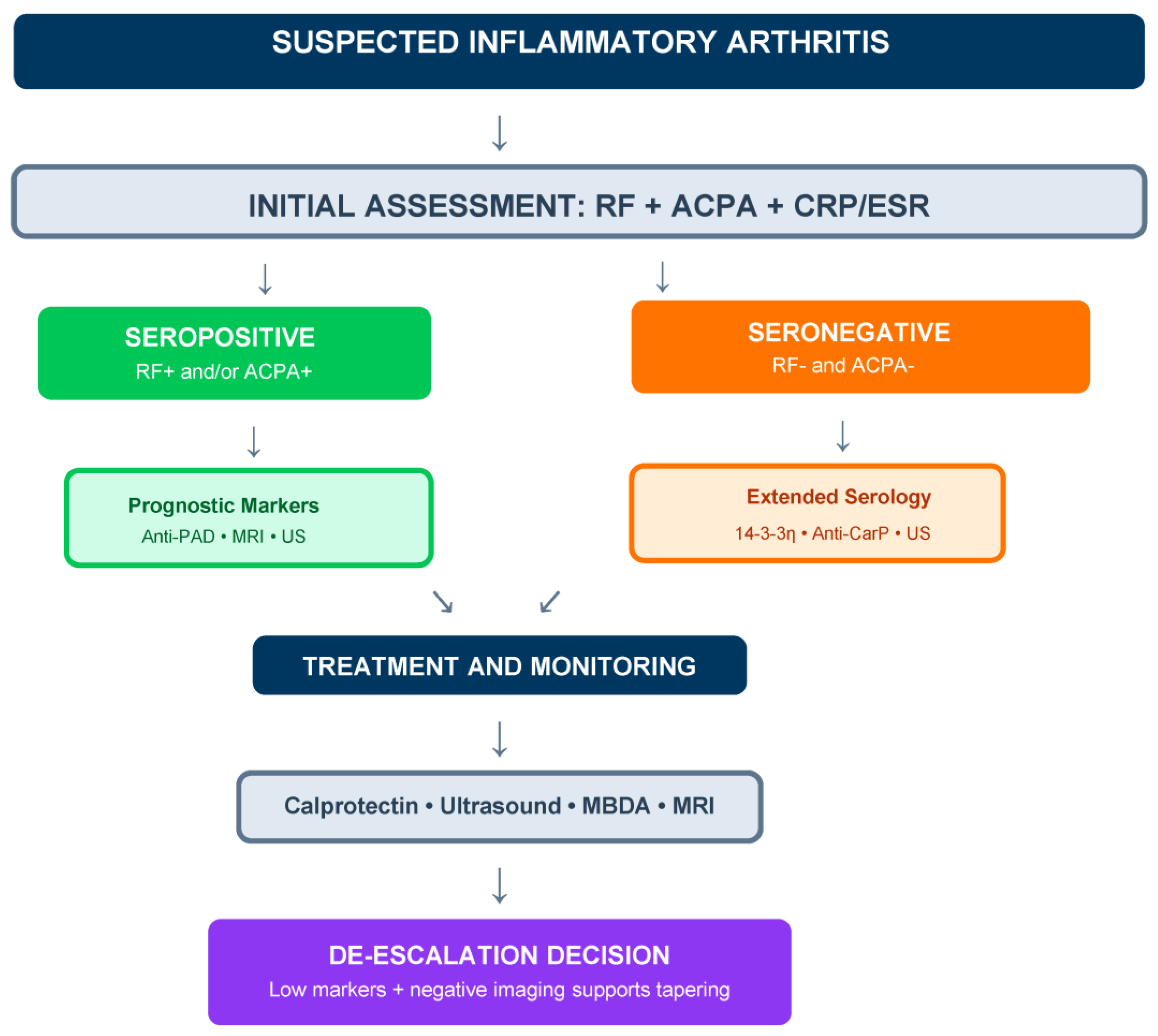 Limited prognostic precision: While RF/ACPA positivity indicates higher risk, they incompletely predict individual trajectories, treatment response, or optimal therapeutic intensity.