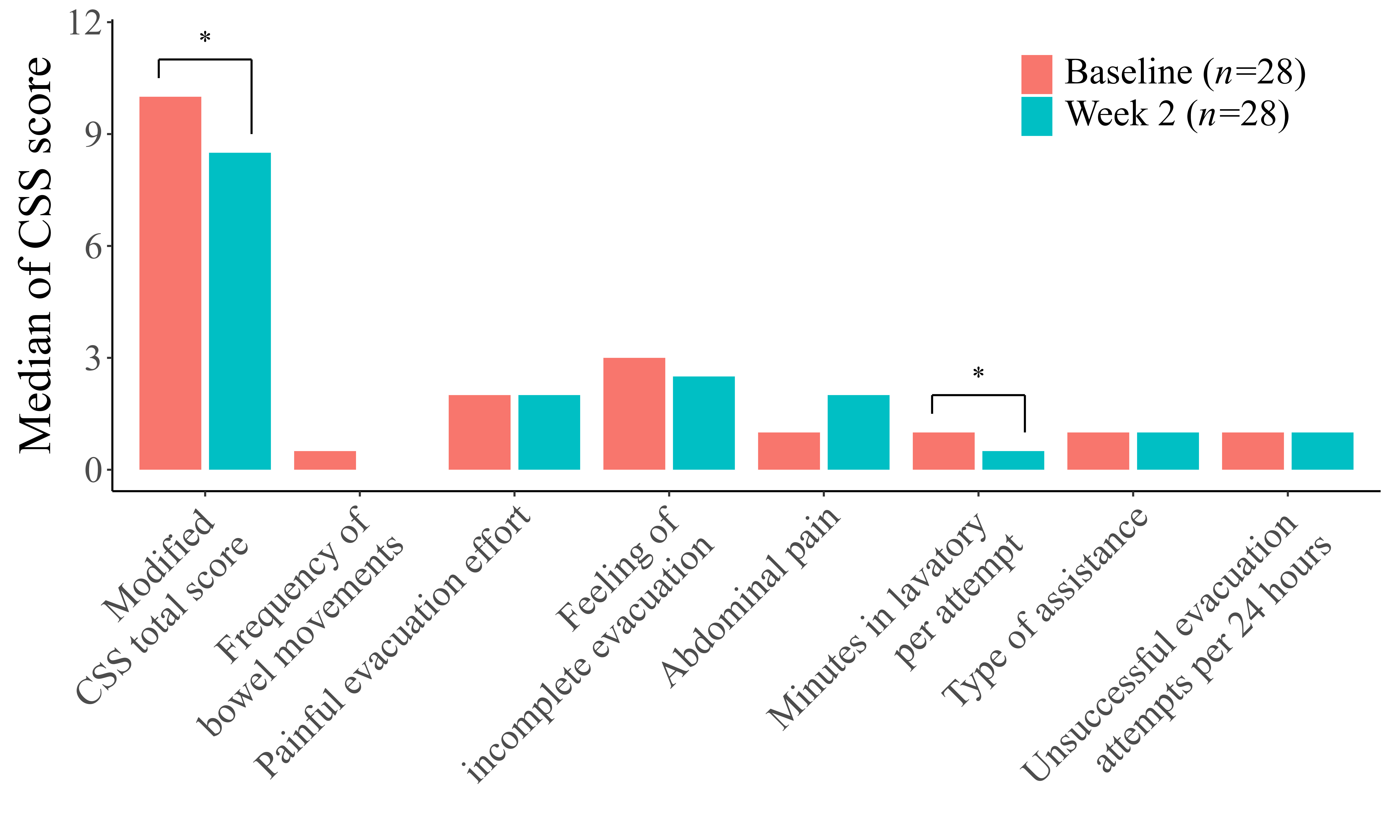 23]. In the present study, improvement in stool form following elobixibat administration suggests a potential contribution to enhanced patient QOL, representing a clinically relevant outcome. Moreover, the modified CSS total score significantly decreased from 10.0 to 8.5, indicating that elobixibat may contribute to reducing defecation-related discomfort. Although improvements in the CSS total score can be observed as early as 2 weeks of treatment [
