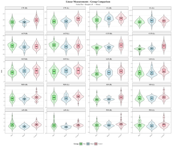 p < 0.05). In particular, significant differences were observed for condylar width (
