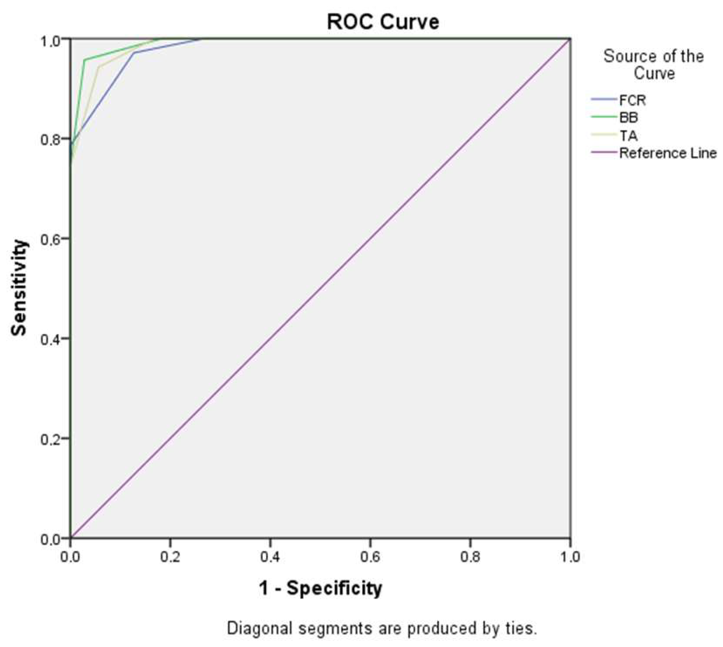 p < 0.001). A cut-off value of 1.25 yielded a sensitivity of 95.7% and a specificity of 97.2% (