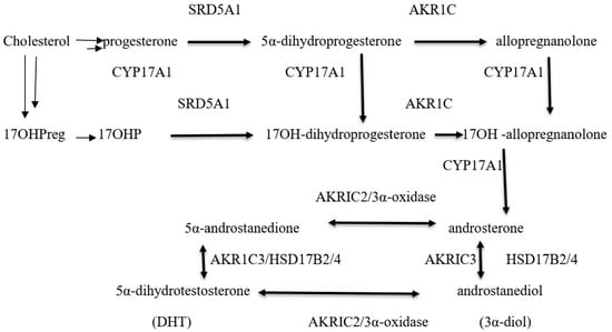 - Auchus, R.J. The backdoor pathway to dihydrotestosterone. Trends Endocrinol. Metab. 2004, 15, 432–438. [Google Scholar] [CrossRef] [PubMed]