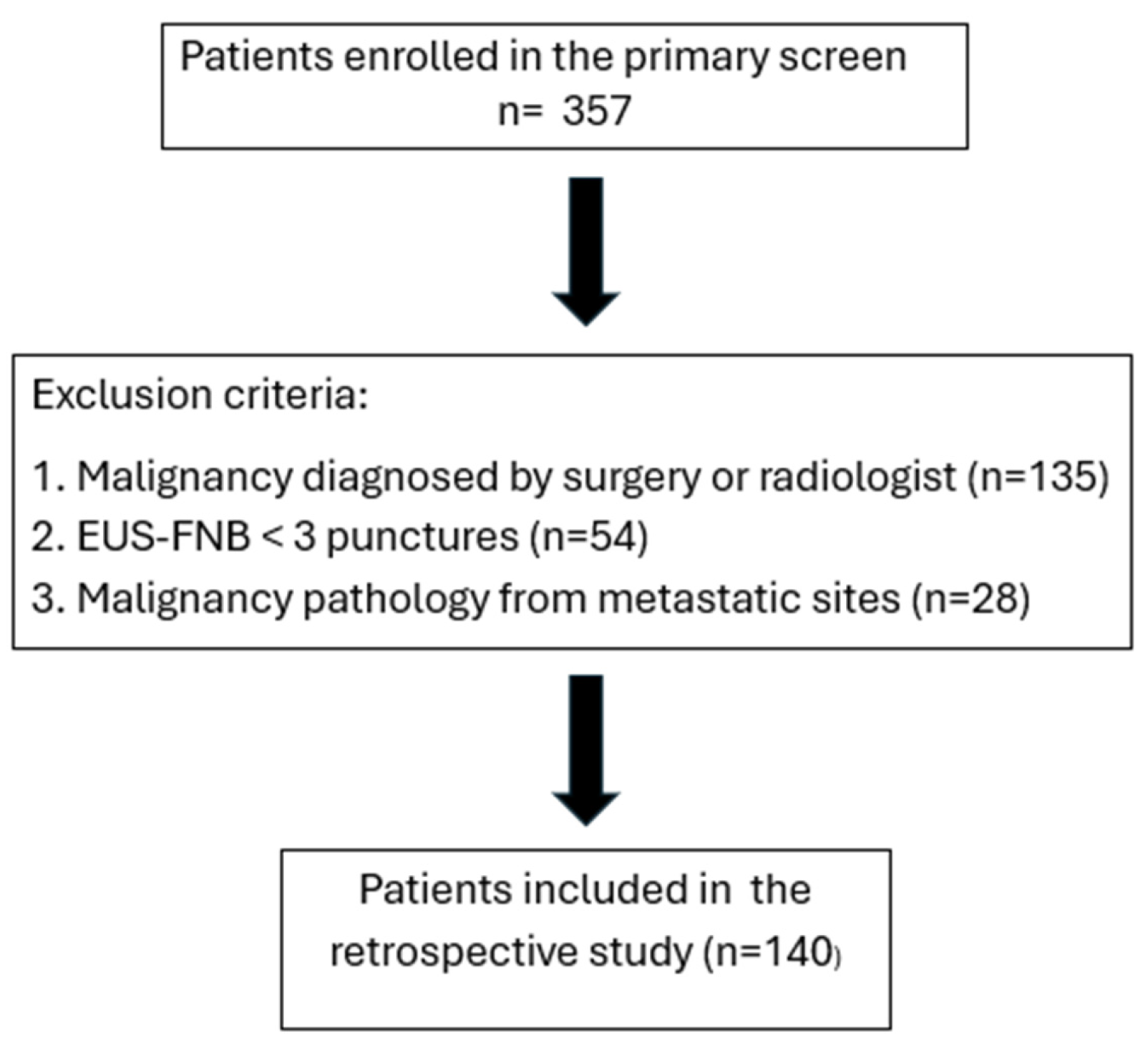 Chicago/Turabian StyleChuang, Te-Jung, Pei-Tzu Chen, Jung-Chun Lin, and Hsuan-Wei Chen. 2026. "Optimal Puncture Number and Tissue Evaluation Method in Endoscopic Ultrasound-Guided Fine-Needle Biopsy for Patients with Malignant Neoplasm of Pancreas" Diagnostics 16, no. 3: 397. https://doi.org/10.3390/diagnostics16030397