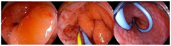 - Junquera, F.; Martínez-Bauer, E.; Miquel, M.; Fort, M.; Gallach, M.; Brullet, E.; Campo, R. OVESCO: A promising system for endoscopic closure of gastrointestinal tract perforations. Gastroenterol. Hepatol. 2011, 34, 568–572. [Google Scholar] [CrossRef]