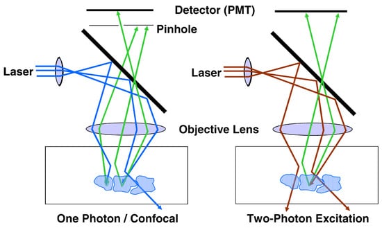 - Benninger, R.K.; Piston, D.W. Two-photon excitation microscopy for the study of living cells and tissues. Curr. Protoc. Cell Biol. 2013, 59, 4–11. [Google Scholar] [CrossRef]