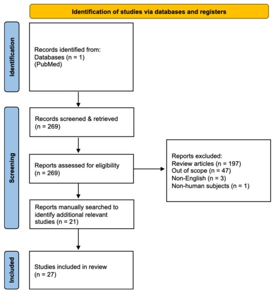 PRISMA flow diagram illustrating study selection (27 studies included).