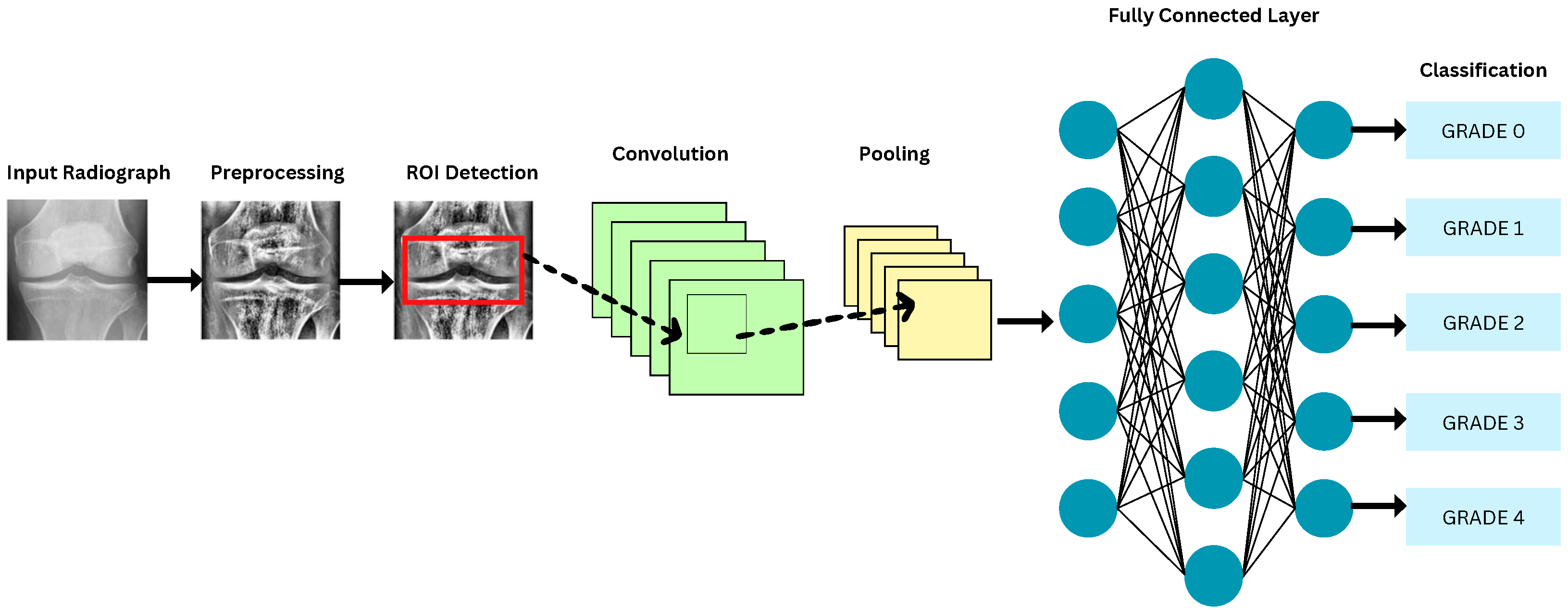 - Articles that discuss only traditional image processing and ML techniques for KOA classification.
