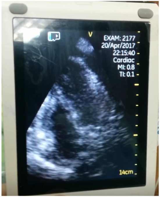 - Labovitz, A.J.; Noble, V.E.; Bierig, M.; Goldstein, S.A.; Jones, R.; Kort, S.; Porter, T.R.; Spencer, K.T.; Tayal, V.S.; Wei, K. Focused Cardiac Ultrasound in the Emergent Setting: A Consensus Statement of the American Society of Echocardiography and American College of Emergency Physicians. J. Am. Soc. Echocardiogr. 2010, 23, 1225–1230. [Google Scholar] [CrossRef]