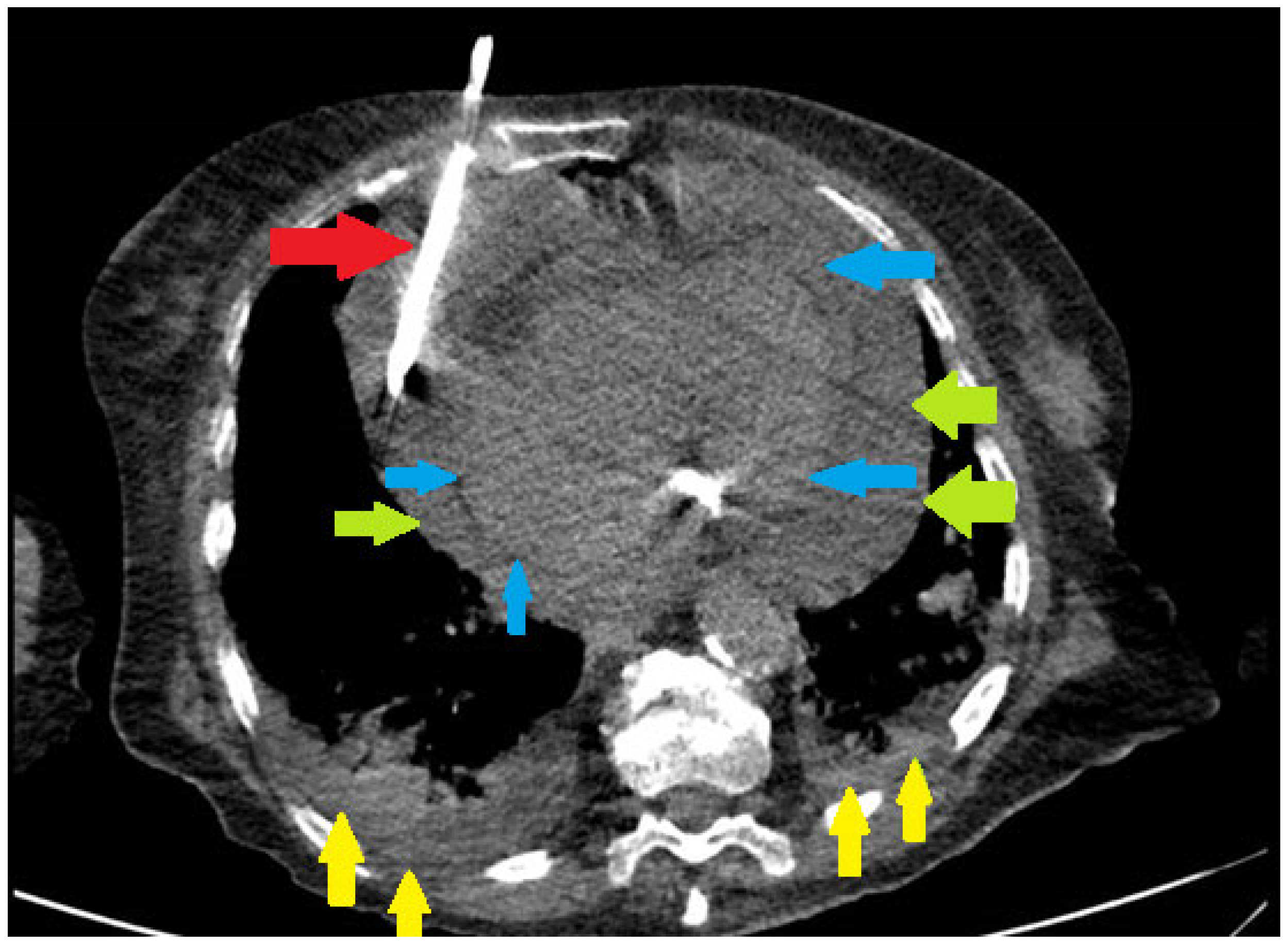 - Alpert, E.A.; Amit, U.; Guranda, L.; Mahagna, R.; Grossman, S.A.; Bentancur, A. Emergency department point-of-care ultrasonography improves time to Pericardiocentesis for clinically significant effusions. Clin. Exp. Emerg. Med. 2017, 4, 128–132. [Google Scholar] [CrossRef]