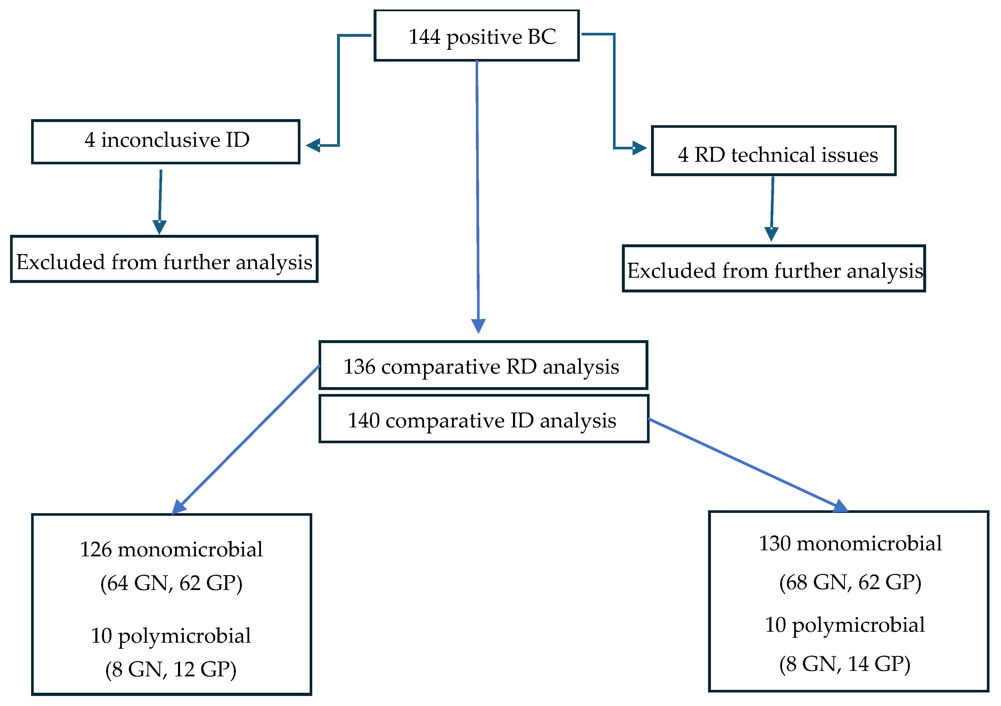 - Rhoads, D.D.; Pournaras, S.; Leber, A.; Balada-Llasat, J.M.; Harrington, A.; Sambri, V.; She, R.; Berry, G.J.; Daly, J.; Good, C.; et al. Multicenter Evaluation of the BIOFIRE Blood Culture Identification 2 Panel for Detection of Bacteria, Yeasts, and Antimicrobial Resistance Genes in Positive Blood Culture Samples. J. Clin. Microbiol. 2023, 61, e0189122. [Google Scholar] [CrossRef] [PubMed]