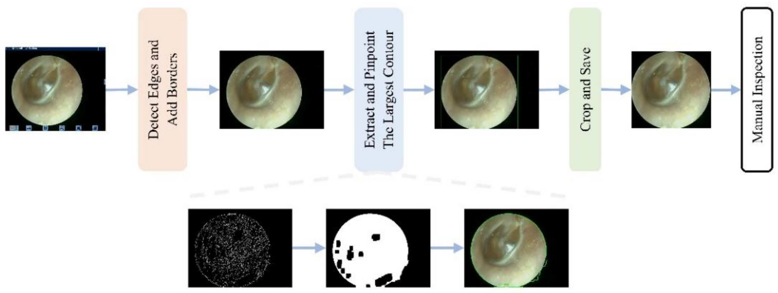 - Khan, M.A.; Kwon, S.; Choo, J.; Hong, S.M.; Kang, S.H.; Park, I.H.; Kim, S.K.; Hong, S.J. Automatic detection of tympanic membrane and middle ear infection from oto-endoscopic images via convolutional neural networks. Neural Netw. 2020, 126, 384–394. [Google Scholar] [CrossRef] [PubMed]