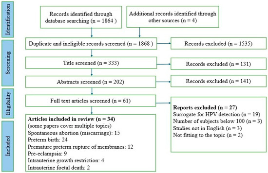 Results: Twenty-nine studies and two clinical trials met the inclusion criteria. Most of them focused on cervical neoplasia (