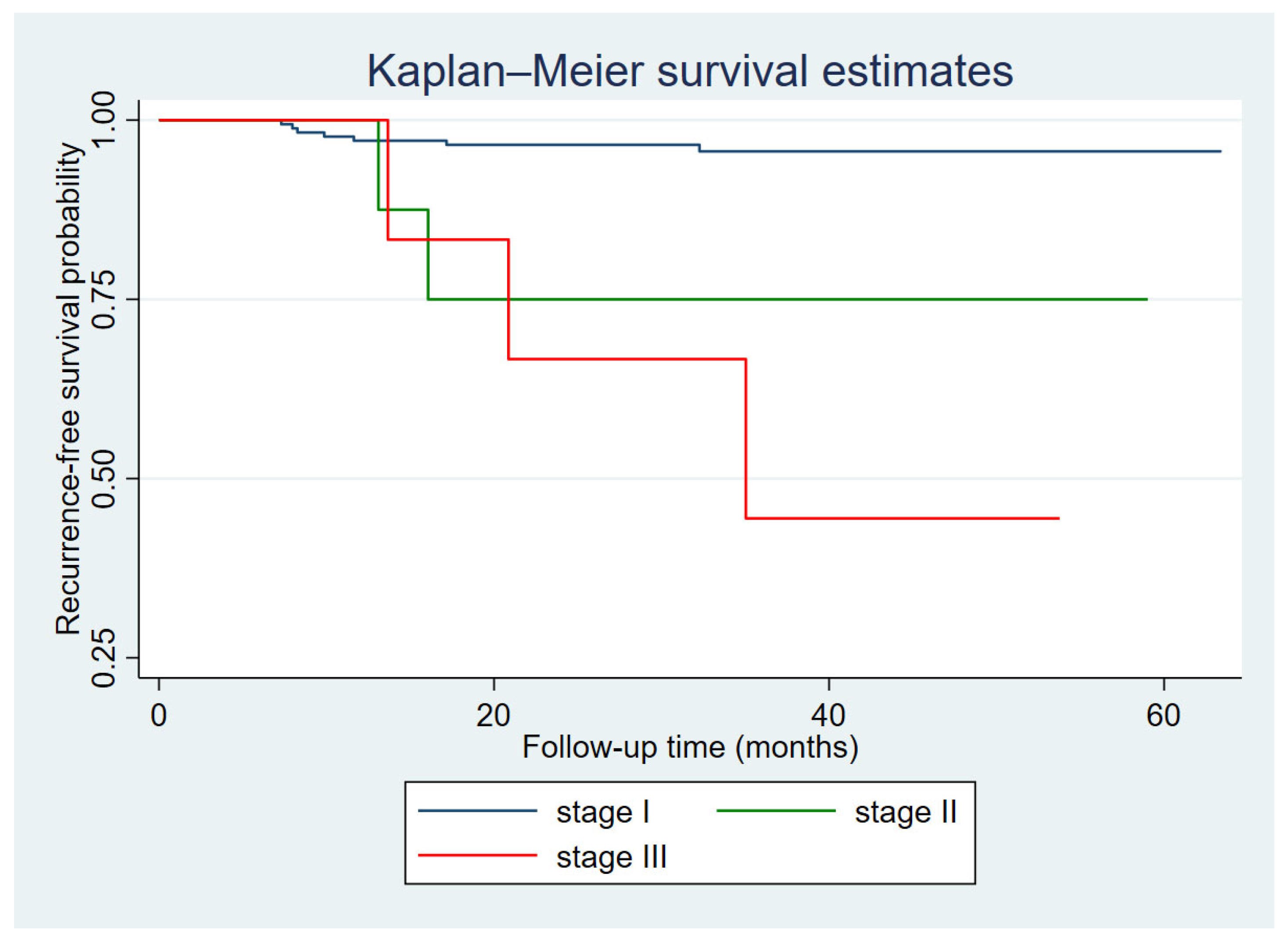 - Vo, T.M.; Duong, K.A.; Tran, L.T.; Bui, T.C. Recurrence rate and associated factors of borderline ovarian tumors in the south of Vietnam. J. Obstet. Gynaecol. Res. 2019, 45, 2055–2061. [Google Scholar] [CrossRef] [PubMed]