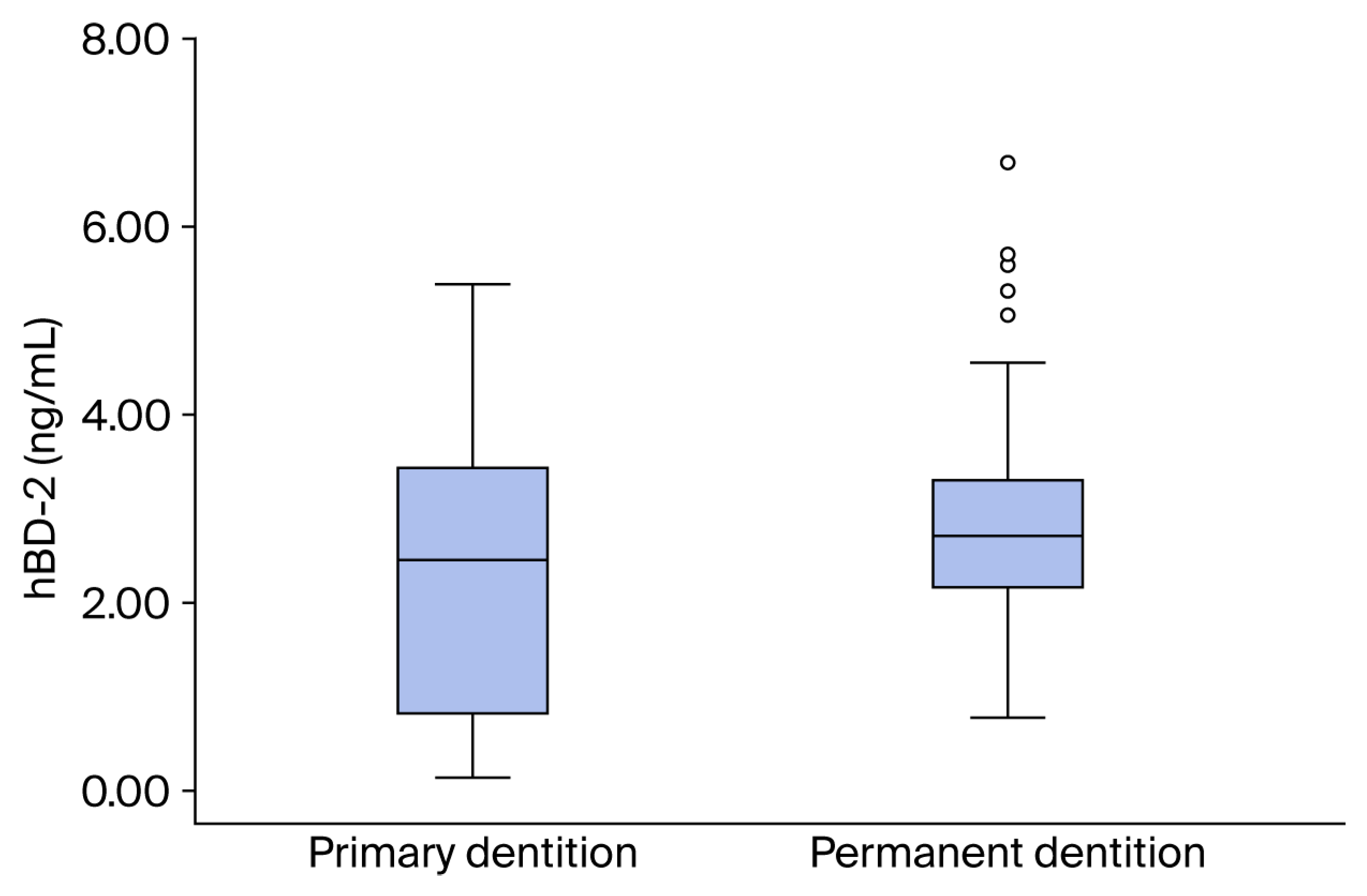 Stojković B, Igić M, Jevtović Stoimenov T, Tričković Janjić O, Ignjatović A, Kostić M, Petrović M, Stojanović S, Živković N, Stojanović A, et al. A Comparative Analysis of Differences in Salivary hBD-2 Levels and Their Correlation with Dental Caries and Unstimulated Saliva pH in Children with Primary and Permanent Dentition. Diagnostics. 2026; 16(4):591. https://doi.org/10.3390/diagnostics16040591