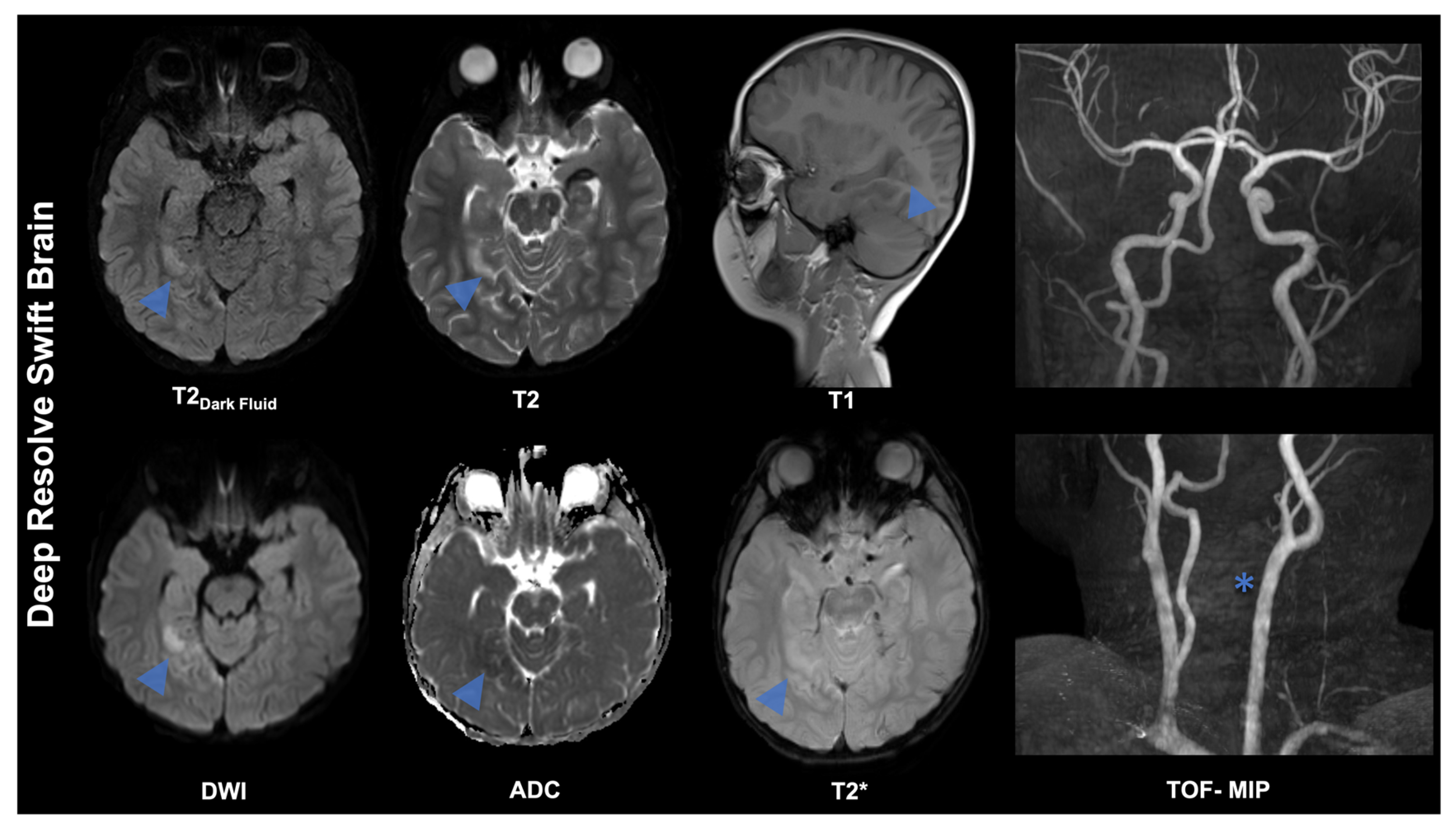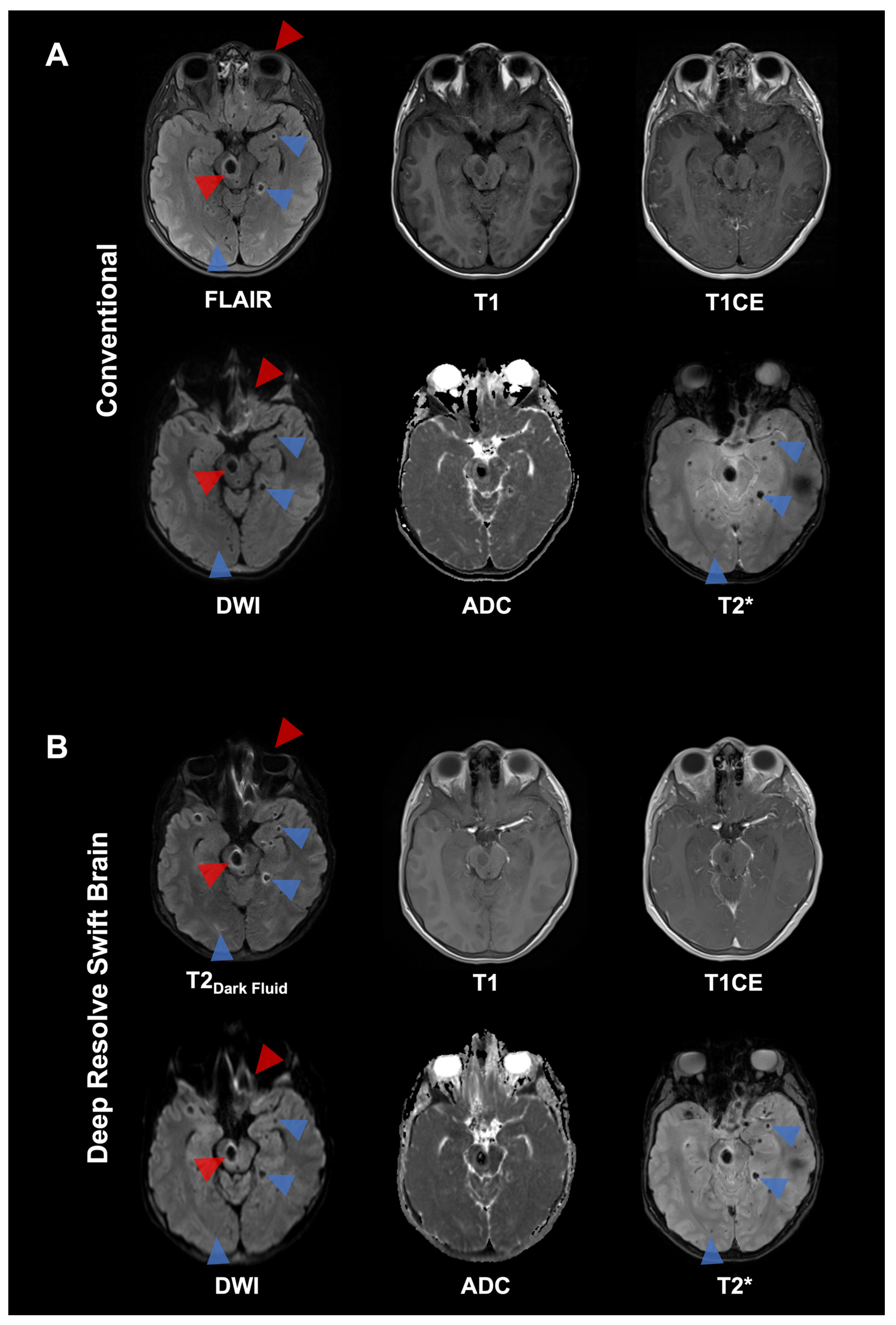 - Hakim, A.; Rohner, R.; Winklehner, A.; Rossel, J.B.; Lehmann, C.; Wiest, R.; Gralla, J.; Piechowiak, E. Deep Resolve Boost in 2D MRI for Neuroradiology: A Comparative Evaluation of Diagnostic Gains and Potential Risks. AJNR Am. J. Neuroradiol. 2025, ajnr.A9081. [Google Scholar] [CrossRef]