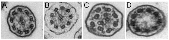 - Staar, B.O.; Hegermann, J.; Auber, B.; Ewen, R.; von Hardenberg, S.; Olmer, R.; Pink, I.; Rademacher, J.; Wetzke, M.; Ringshausen, F.C. Ciliary Ultrastructure Assessed by Transmission Electron Microscopy in Adults with Bronchiectasis and Suspected Primary Ciliary Dyskinesia but Inconclusive Genotype. Cells 2023, 12, 2651. [Google Scholar] [CrossRef]