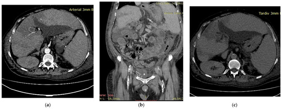 - Han, Z.; Qiu, B.; Zhu, Z. Portal and Mesenteric Venous Gas Due to Necrotizing Enteritis. Indian J. Surg. 2024, 86, 830–831. [Google Scholar] [CrossRef]
