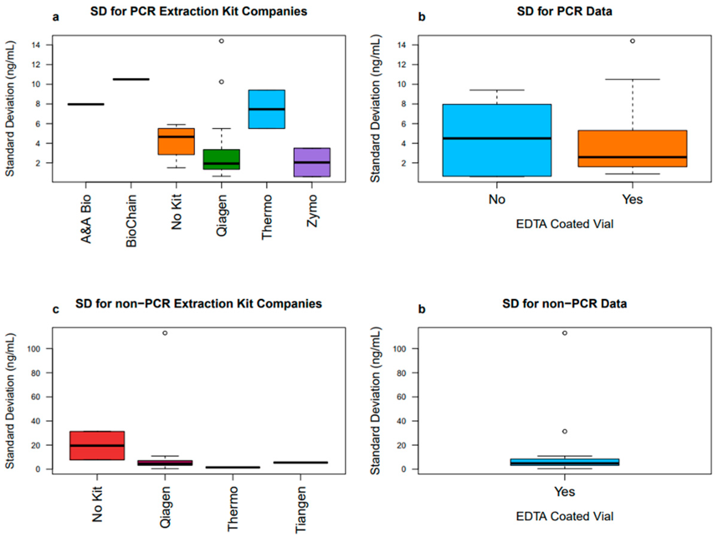 - Polatoglou, E.; Mayer, Z.; Ungerer, V.; Bronkhorst, A.J.; Holdenrieder, S. Isolation and Quantification of Plasma Cell-Free DNA Using Different Manual and Automated Methods. Diagnostics 2022, 12, 2550. [Google Scholar] [CrossRef]