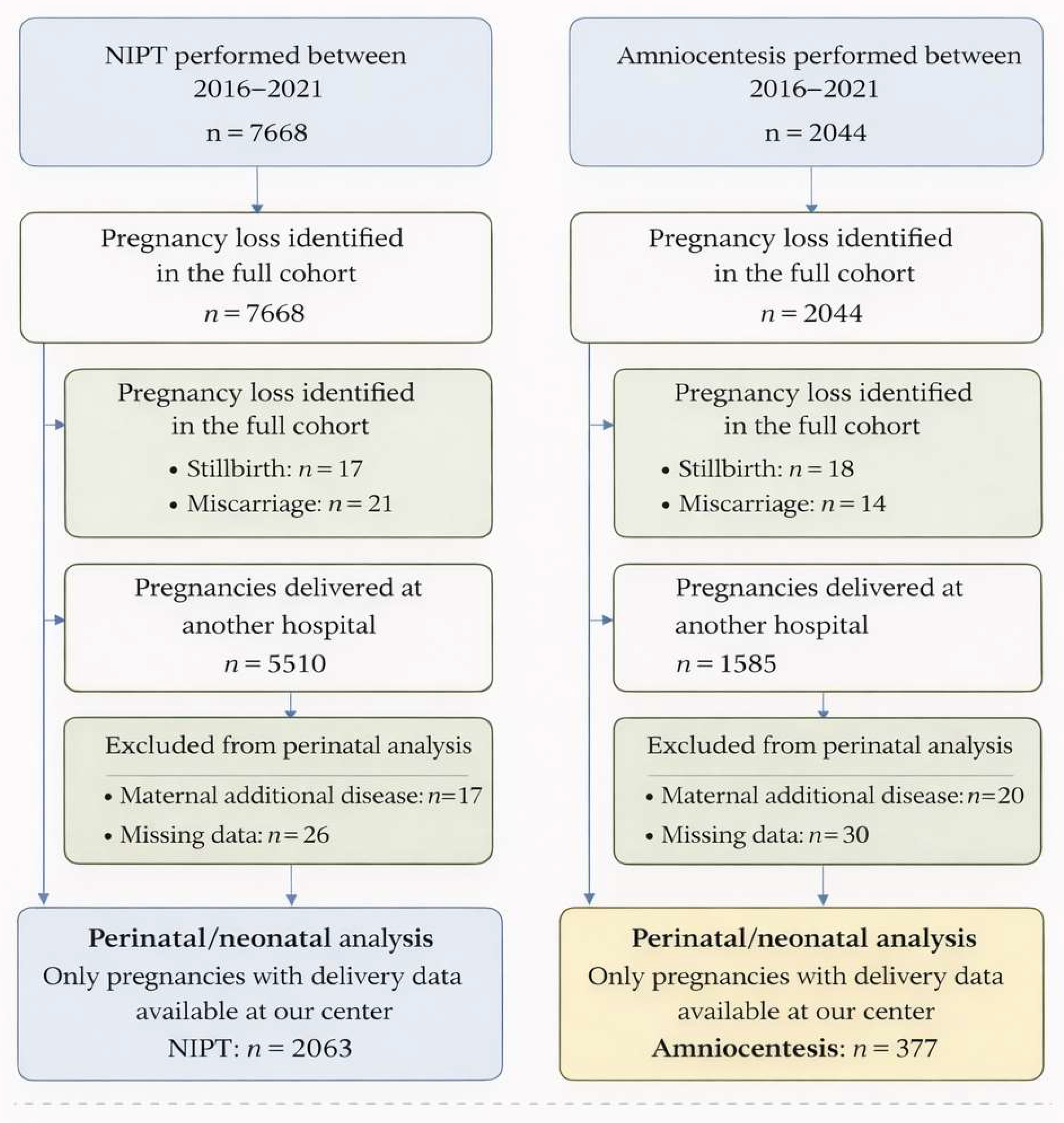 APA StyleBayraktar, B., Golbasi, H., Kuyucu, M., Golbasi, C., Omeroglu, I., Alkan, K. O., Can, S. T., Bayraktar, M. G., & Ekin, A. (2026). The Association Between Amniocentesis and Adverse Pregnancy Outcomes in Pregnancies with Normal/Reportable Test Results: An Indication-Based Comparison with Non-Invasive Prenatal Testing. Diagnostics, 16(6), 867. https://doi.org/10.3390/diagnostics16060867