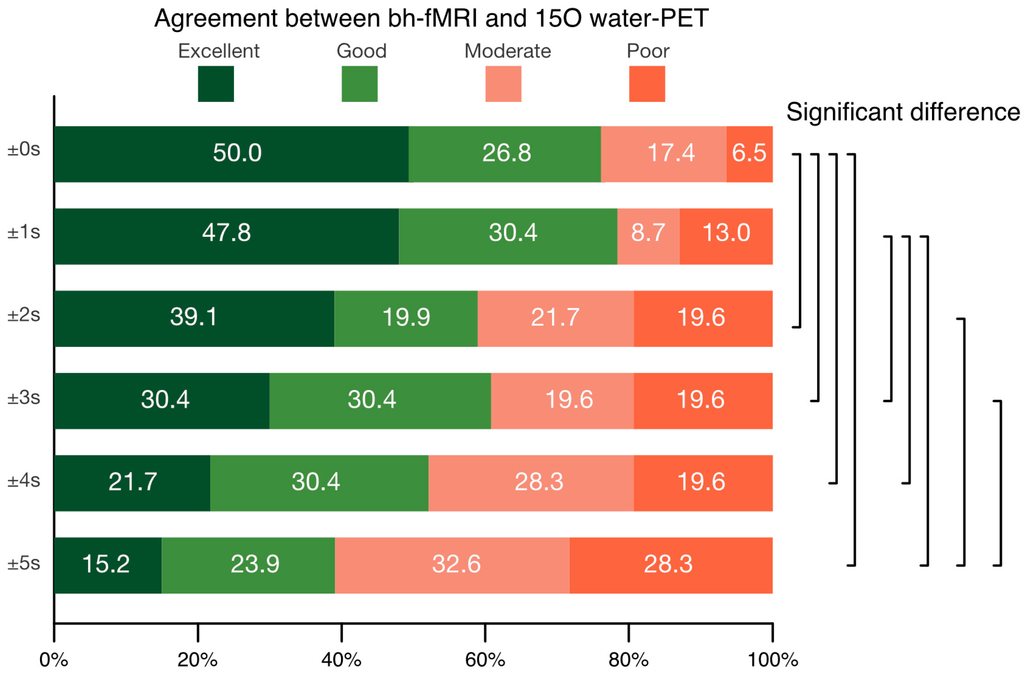 3.1. Influence of the Evaluated Time Periods of bh-fMRI on Agreement with [15O]Water PET