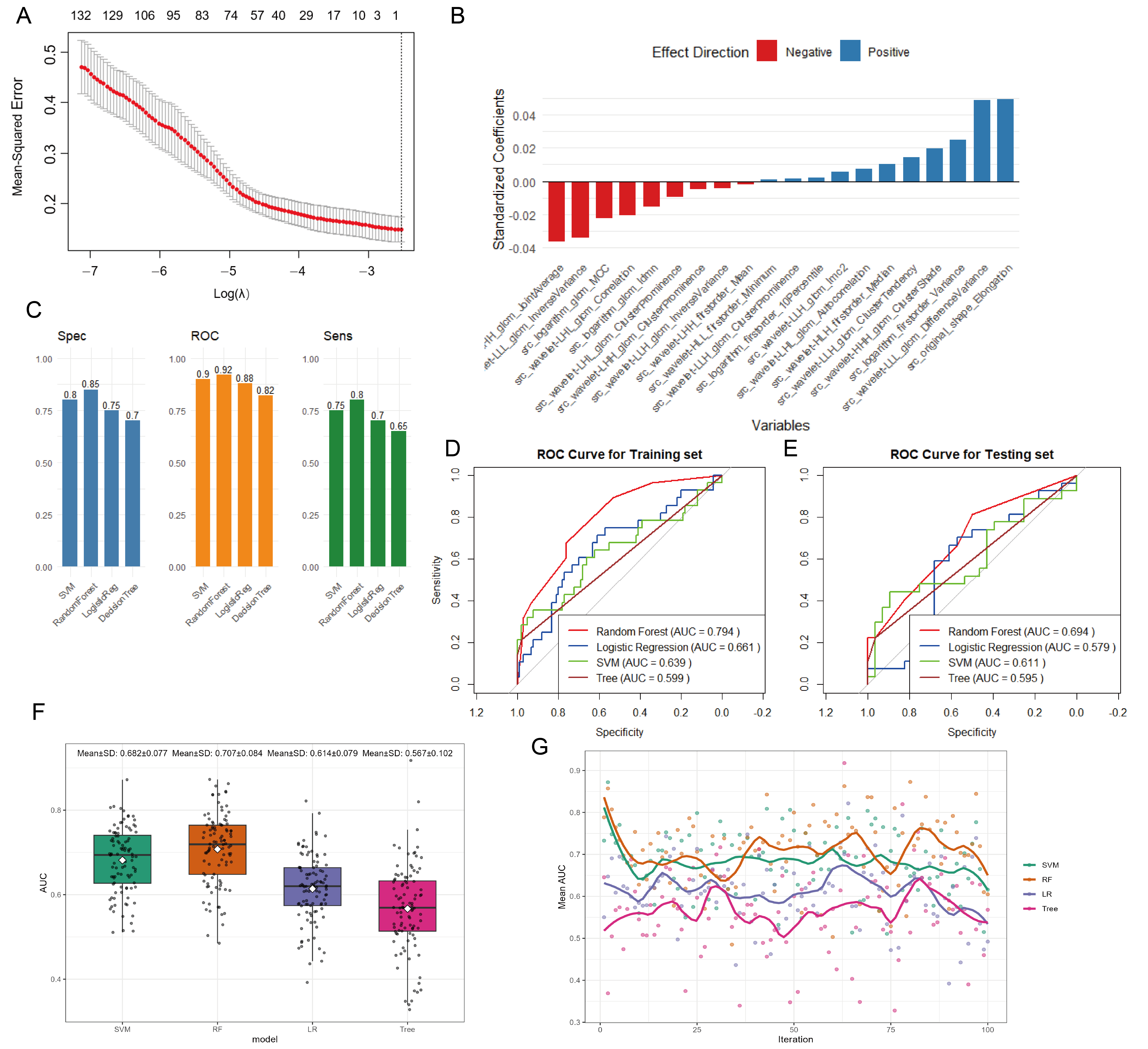 | Radiomic score | 5.253 | 2.655~10.394 | 0.000 | 7.448 | 3.466~16.004 | 0.000 | |