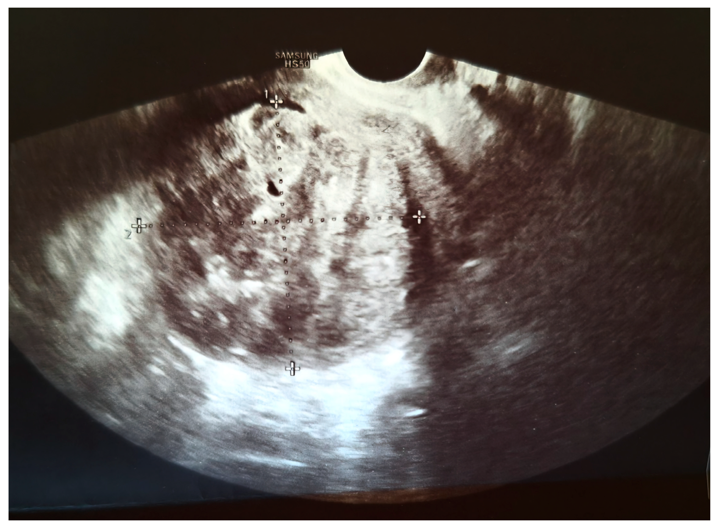 - Cotrino, I.; Carosso, A.; Macchi, C.; Baima Poma, C.; Cosma, S.; Ribotta, M.; Viora, E.; Sciarrone, A.; Borella, F.; Zola, P. Ultrasound and clinical characteristics of uterine smooth muscle tumors of uncertain malignant potential (STUMPs). Eur. J. Obstet. Gynecol. Reprod. Biol. 2020, 251, 167–172. [Google Scholar] [CrossRef]