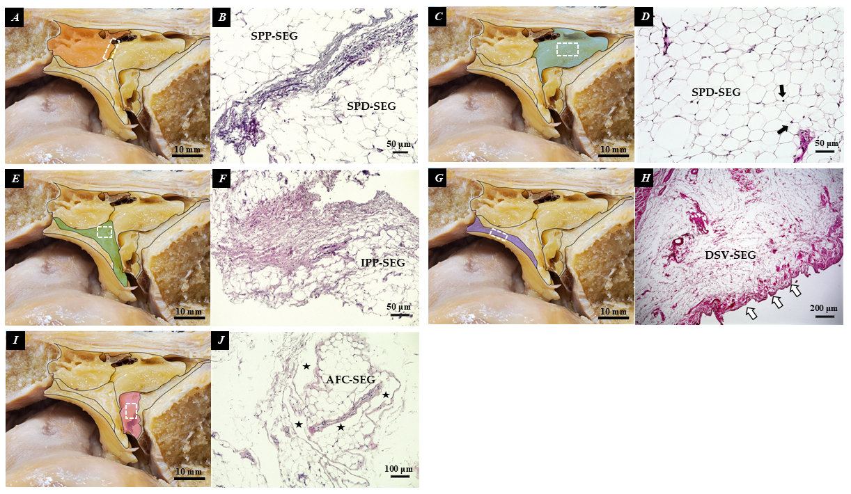 | SPD-SEG | Superficial Distal Segment | Bounded by the patellar tendon, deep infrapatellar bursa, and tibia. | Adipocytes present. Linked to the tibia via the complex connective tissue of the joint capsule. |