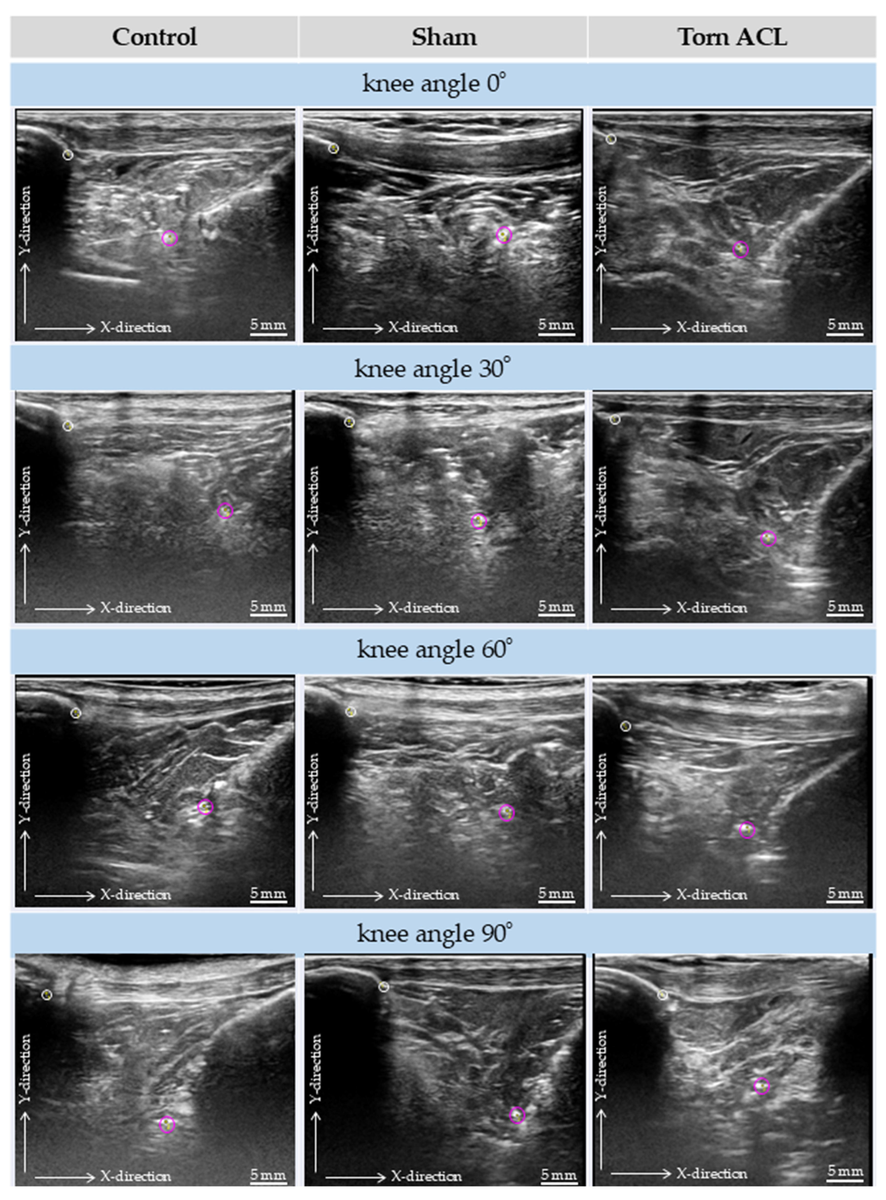 - Kumar, S.; Kumar, A.; Kumar, P. Functional Ultrasonography in Diagnosing Anterior Cruciate Ligament Injury as Compared to Magnetic Resonance Imaging. Indian J. Orthop. 2018, 52, 638–644. [Google Scholar] [CrossRef]