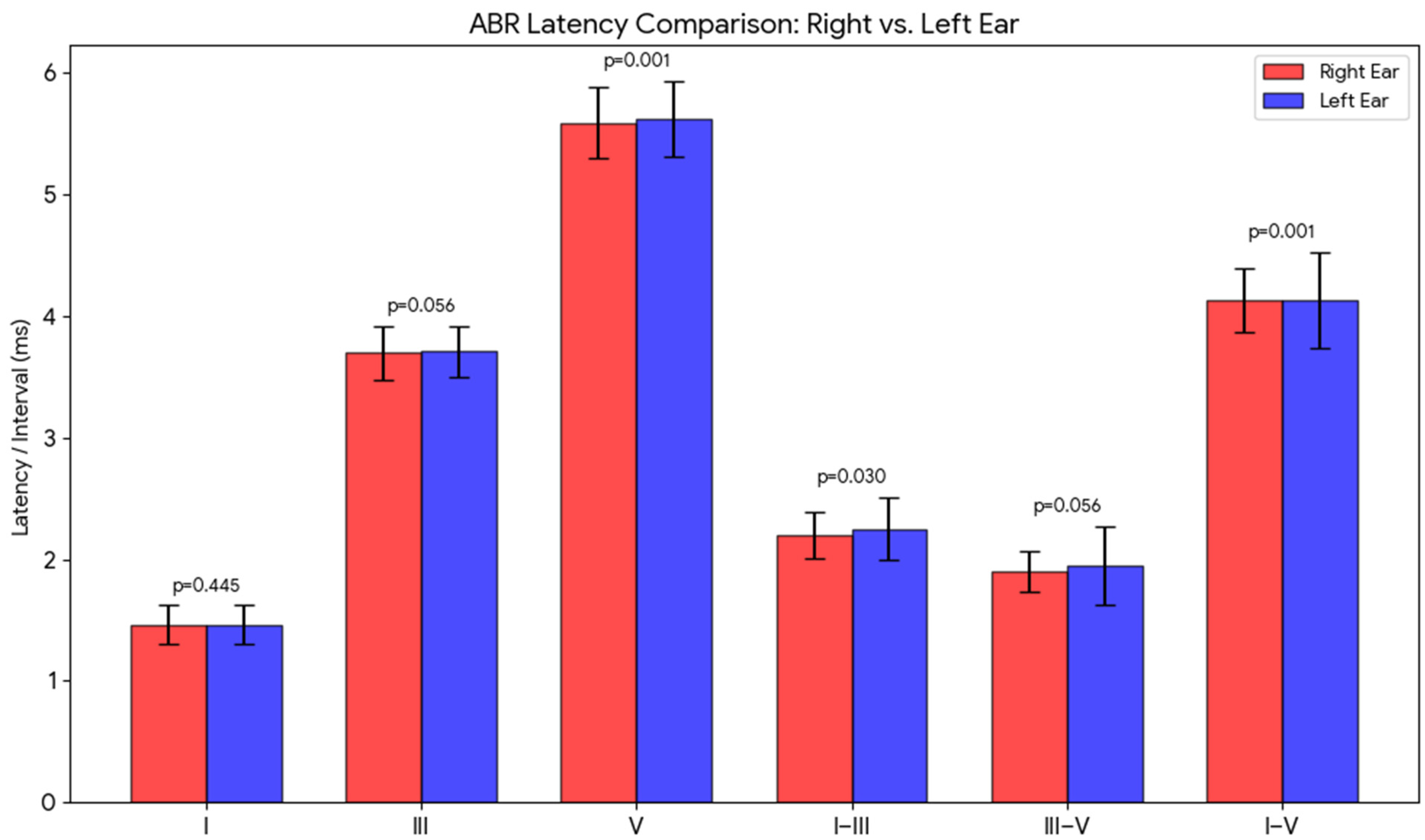 4.4. The Influence of Sex, Ear, and Age on the ABR