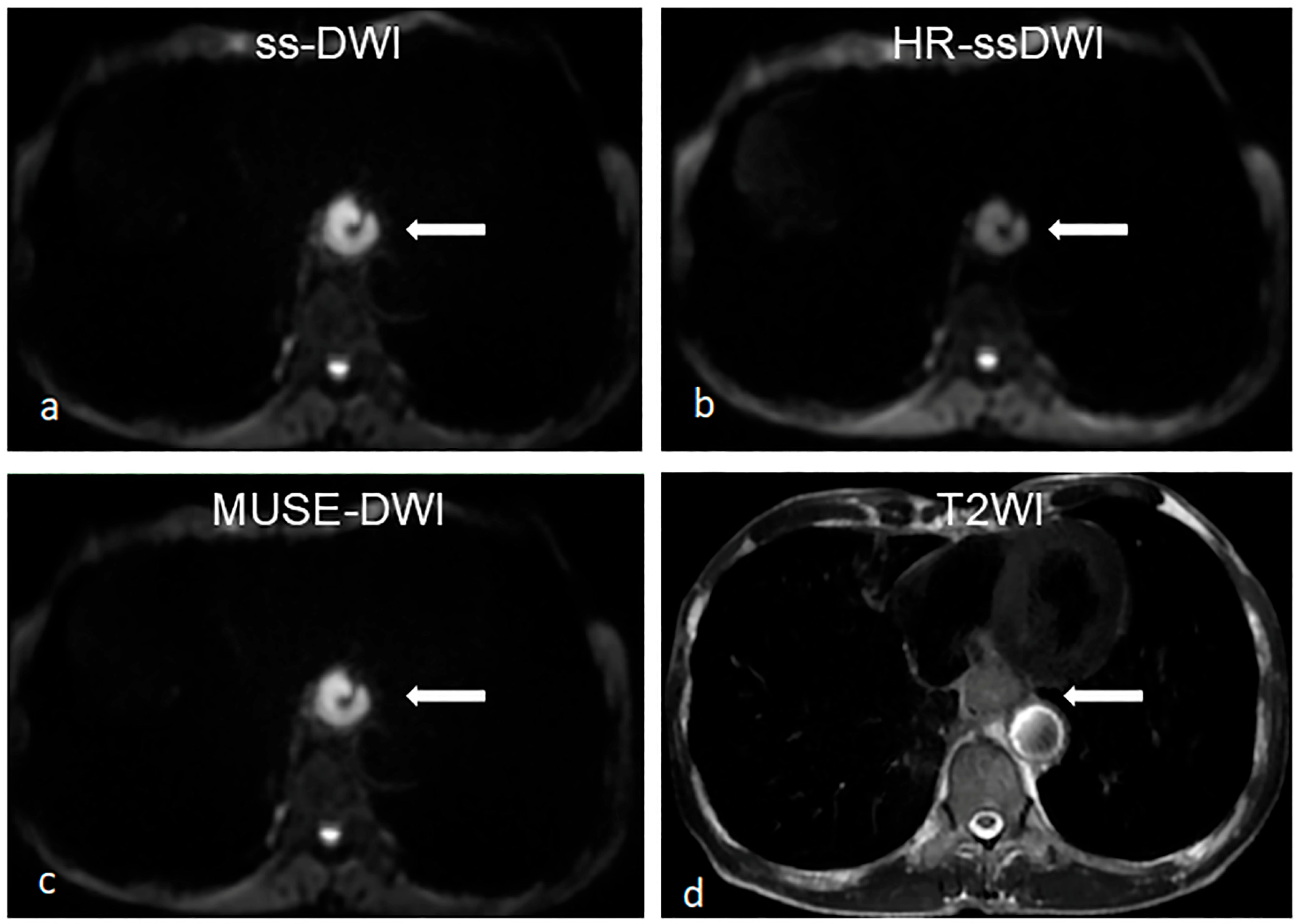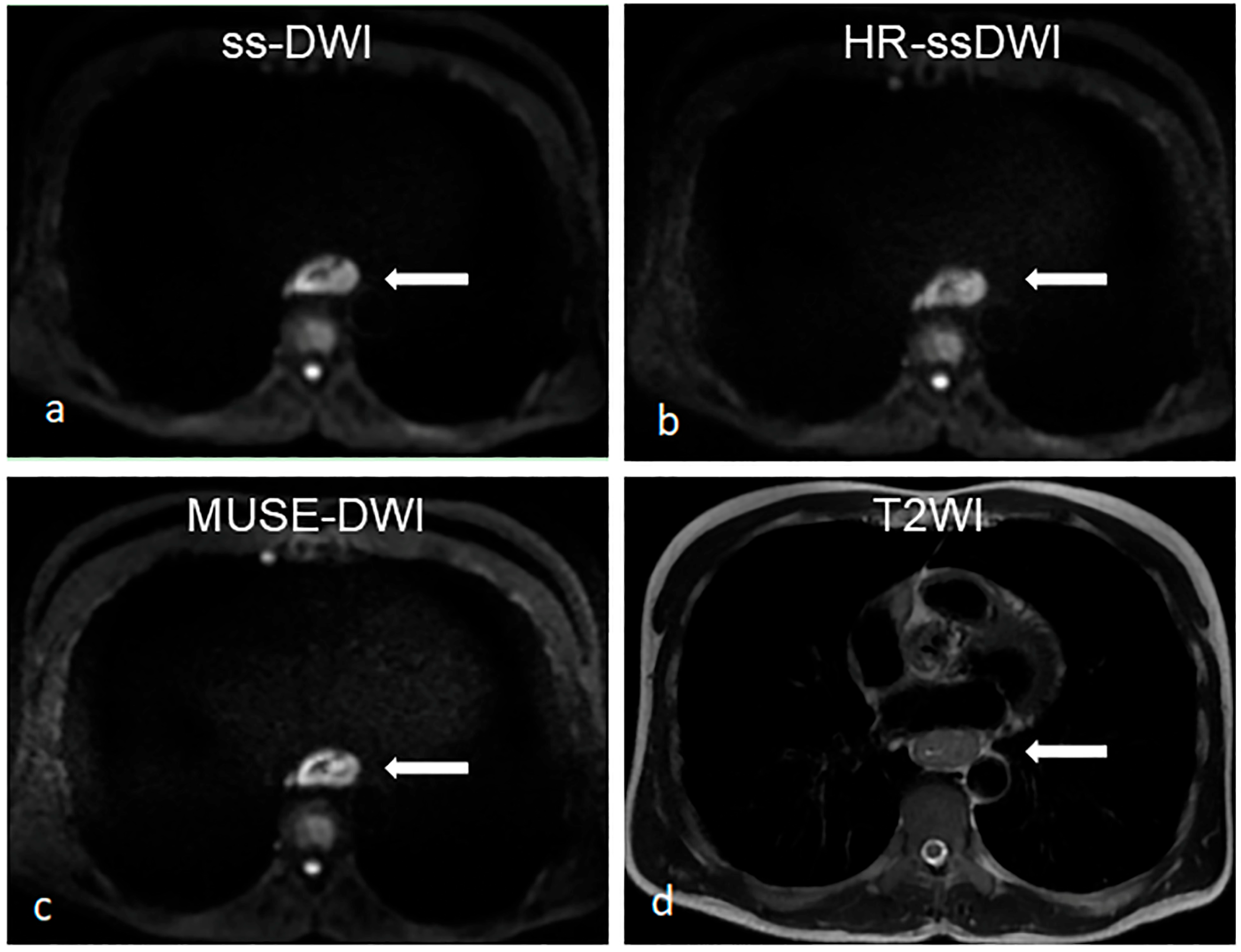 Dong T, He T, Zhang G, Mi H, Huang Z, Li J, Han G, Ding D. Evaluating the Application of MUSE Diffusion-Weighted Imaging in Esophageal Cancer in Comparison with HR and Single-Shot DWIs. Diagnostics. 2026; 16(8):1155. https://doi.org/10.3390/diagnostics16081155