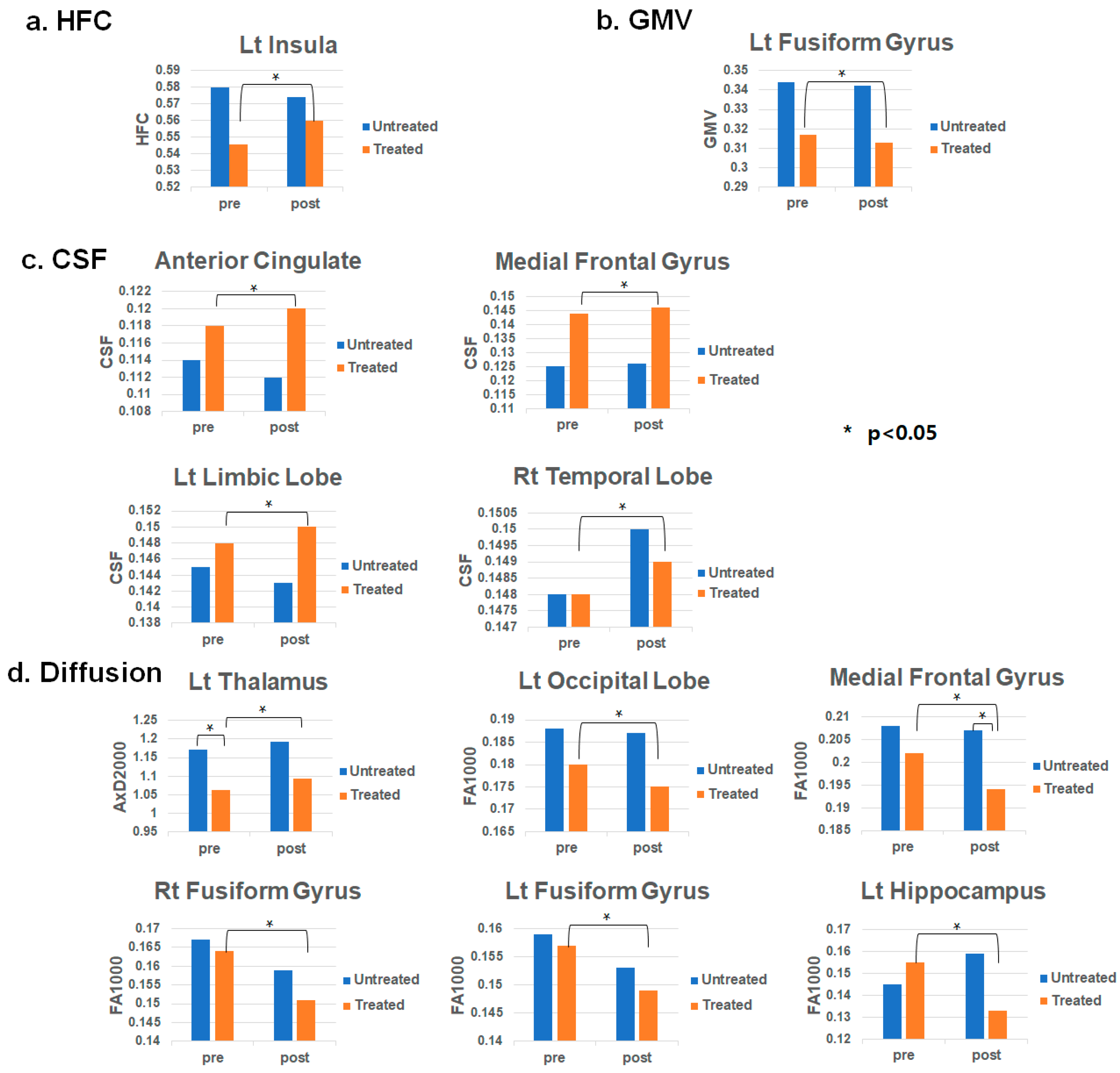 | Lt Fusiform Gyrus | GM | 0.32 (0.28 to 0.33) | 0.31 (0.27 to 0.32) | −1.00 | 0.028 | 0.140 |