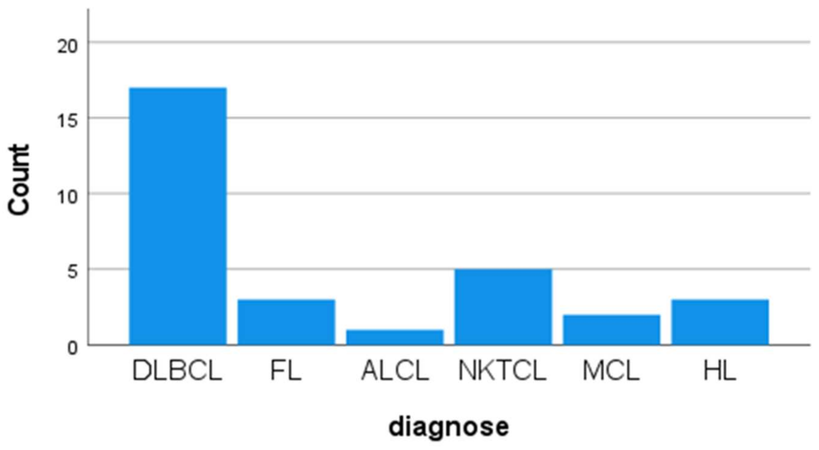 Cases were classified according to histopathological subtype. The most common subtype was DLBCL (
