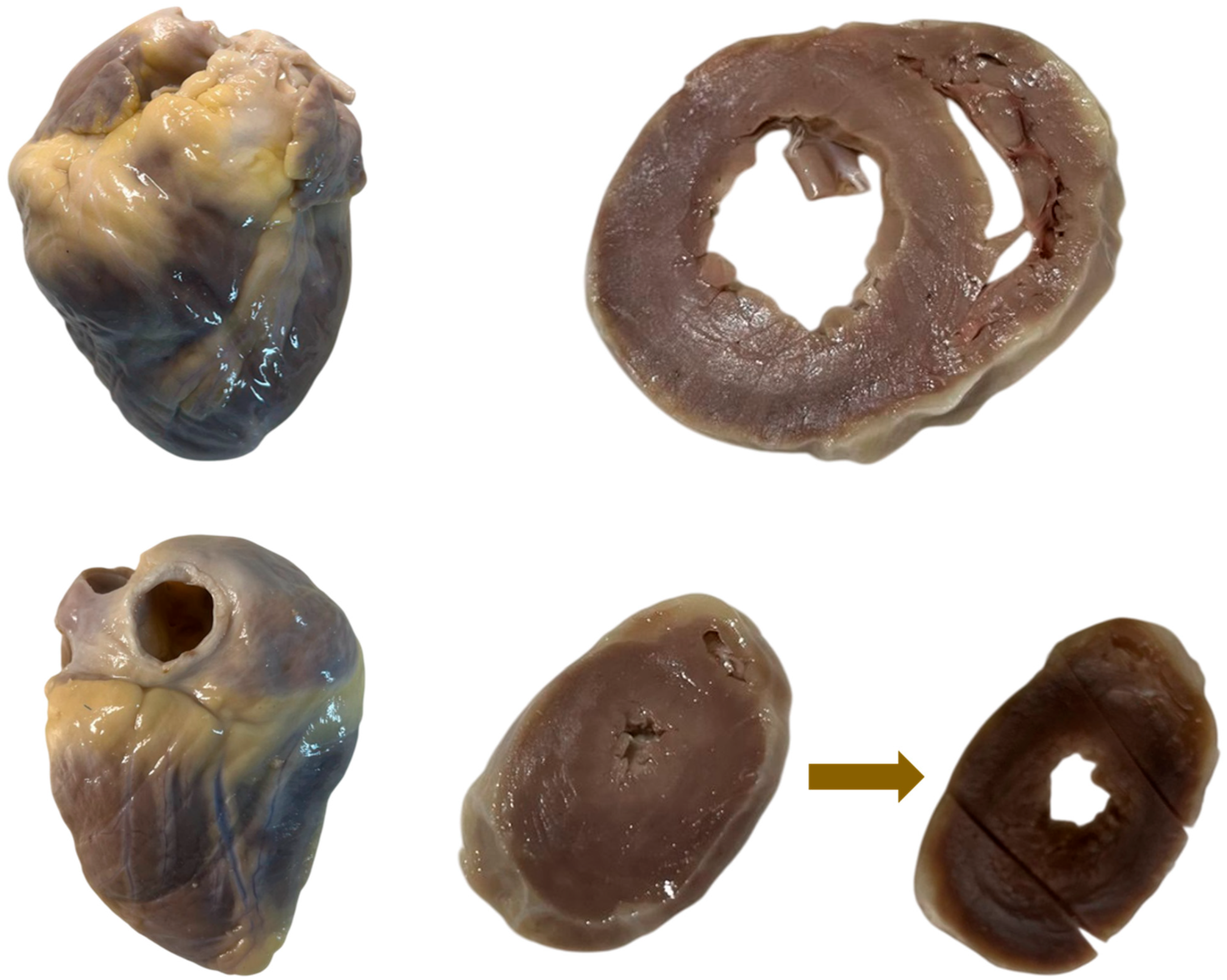 Quantitative estimates of myocardial shrinkage reported in the literature vary substantially depending on species, fixation protocols, and analytical methods. Overall, available data remain limited. For example, Burton et al. demonstrated that the volume of rabbit hearts after histological processing was reduced by approximately 48% compared with in situ MRI measurements [