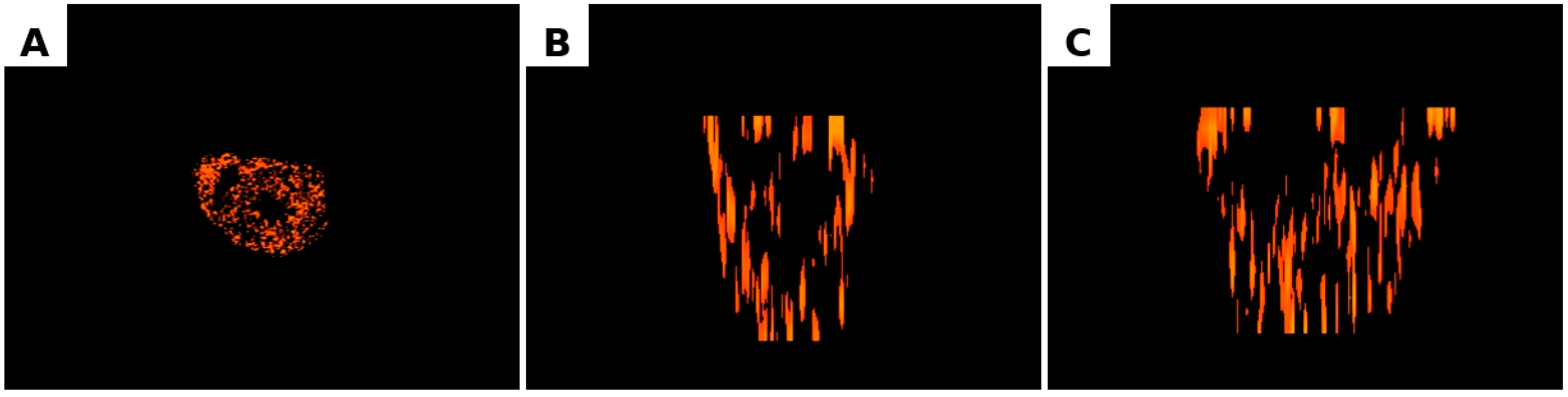From each reconstructed ring, several spatial metrics describing the distribution of nerve fibres were extracted, including entropy (heterogeneity of distribution), Moran’s I (spatial autocorrelation), nearest-neighbour distance (NND) as a measure of local density, and the volume of high-density regions (hotspots).