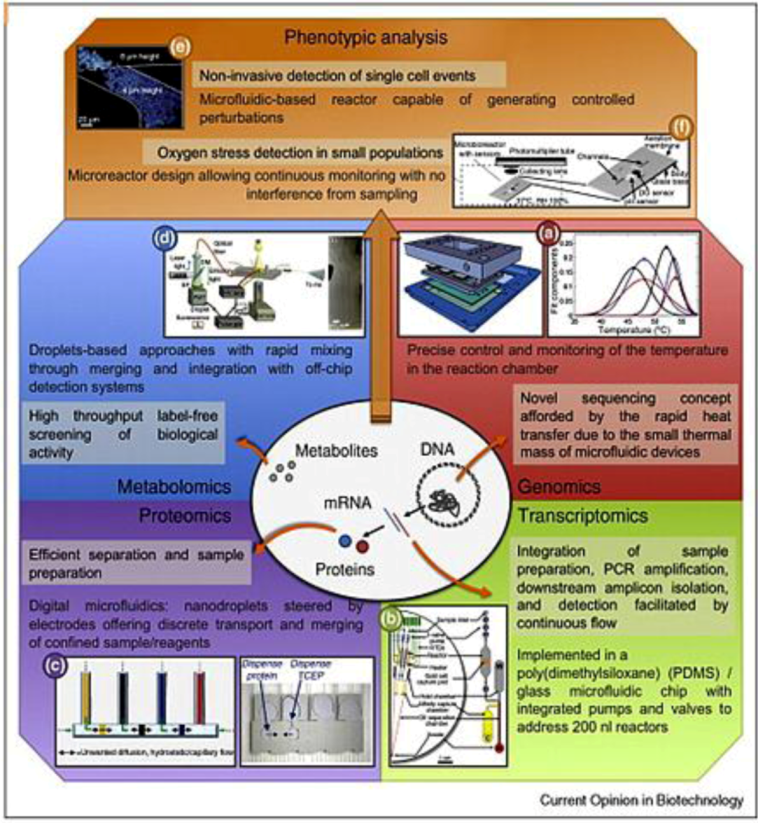 Different high throughput analyses carried out in microfluidic devices, highlighting the advantages of microfluidic approaches to gather information for omics. Adapted with permission from [61], Copyright (2010) Elsevier Ltd.