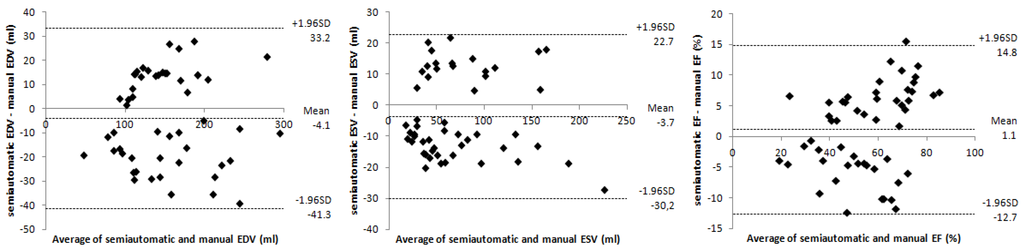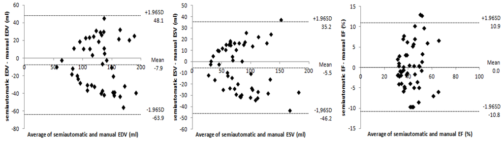 - Holloway, C.J.; Edwards, L.M.; Rider, O.J.; Fast, A.; Clarke, K.; Francis, J.M.; Myerson, S.G.; Neubauer, S. A comparison of visual and quantitative assessment of left ventricular ejection fraction by cardiac magnetic resonance. Int. J. Cardiovasc. Imag. 2011, 27, 563–569. [Google Scholar] [CrossRef]