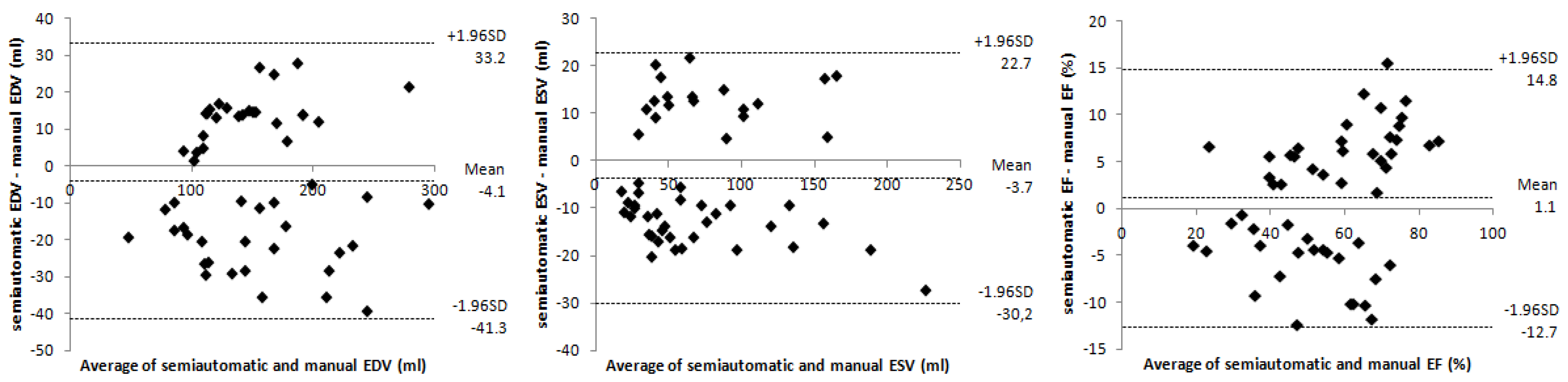 - Lubbers, D.D.; Willems, T.P.; van der Vleuten, P.A.; Overbosch, J.; Götte, M.J.; van Veldhuisen, D.J.; Oudkerk, M. Assessment of global left ventricular functional parameters: Analysis of every second short-axis magnetic resonance imaging slices is as accurate as analysis of consecutive slices. Int. J. Cardiovasc. Imag. 2008, 24, 185–191. [Google Scholar] [CrossRef]