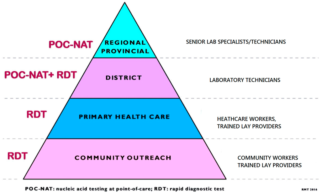 Pyramid of point-of-care diagnostic testing. Adapted from WHO pyramid of laboratory testing [].