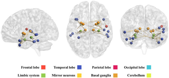 21. Xia, M.; Wang, J.; He, Y. BrainNet Viewer: A Network Visualization Tool for Human Brain Connectomics. PLoS ONE 2013, 8, e68910. [Google Scholar] [CrossRef] [PubMed]