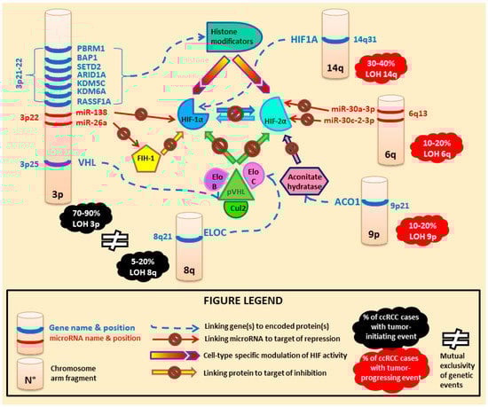 - Mandriota, S.J.; Turner, K.J.; Davies, D.R.; Murray, P.G.; Morgan, N.V.; Sowter, H.M.; Wykoff, C.C.; Maher, E.R.; Harris, A.L.; Ratcliffe, P.J.; et al. HIF activation identifies early lesions in VHL kidneys: Evidence for site-specific tumor suppressor function in the nephron. Cancer Cell 2002, 1, 459–468. [Google Scholar] [CrossRef]